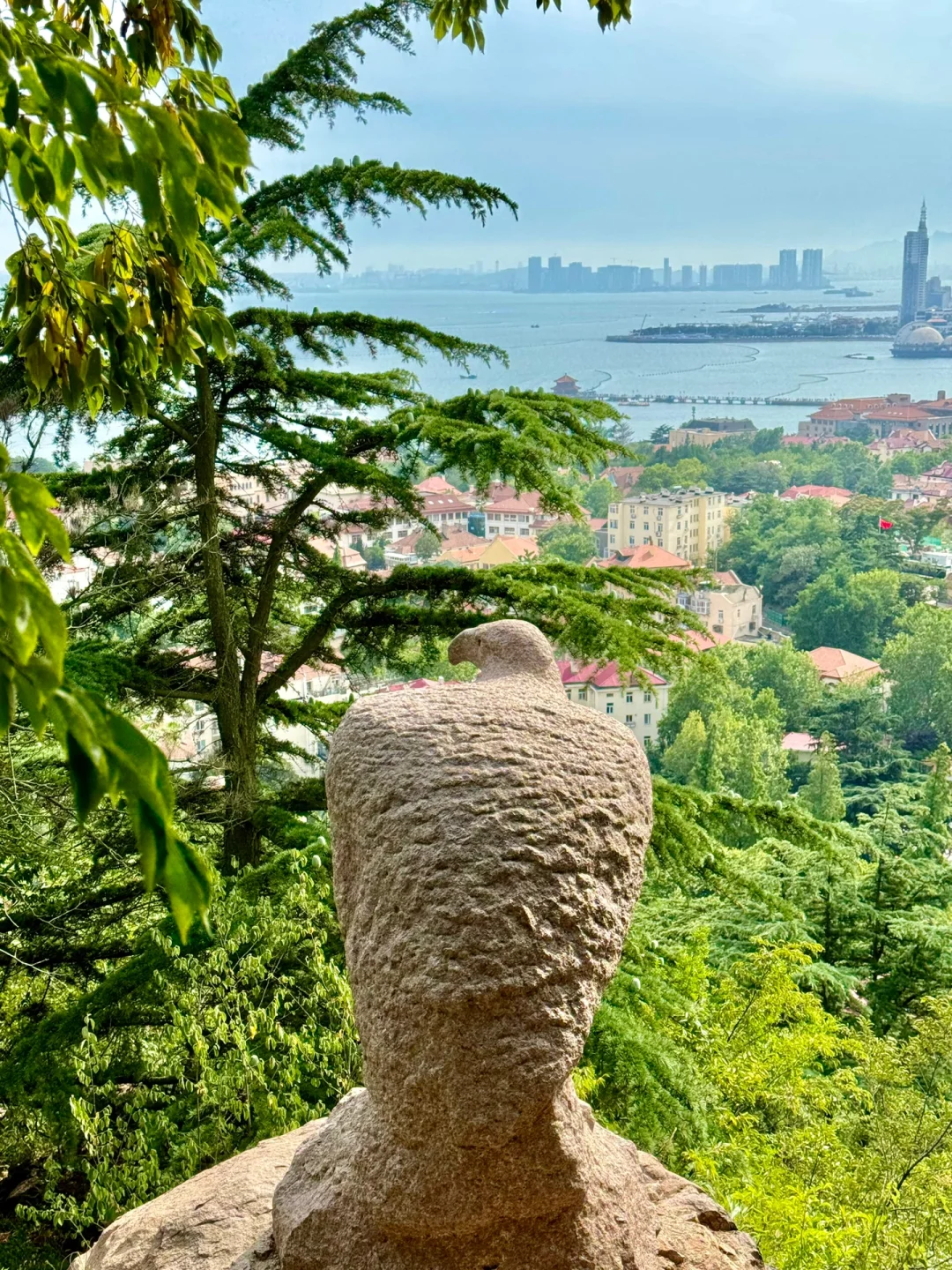 8️⃣石鹰:从咖啡店右边楼梯下去右转,有个石鹰,拍栈桥和江苏路教堂的坠佳机位,人少出片