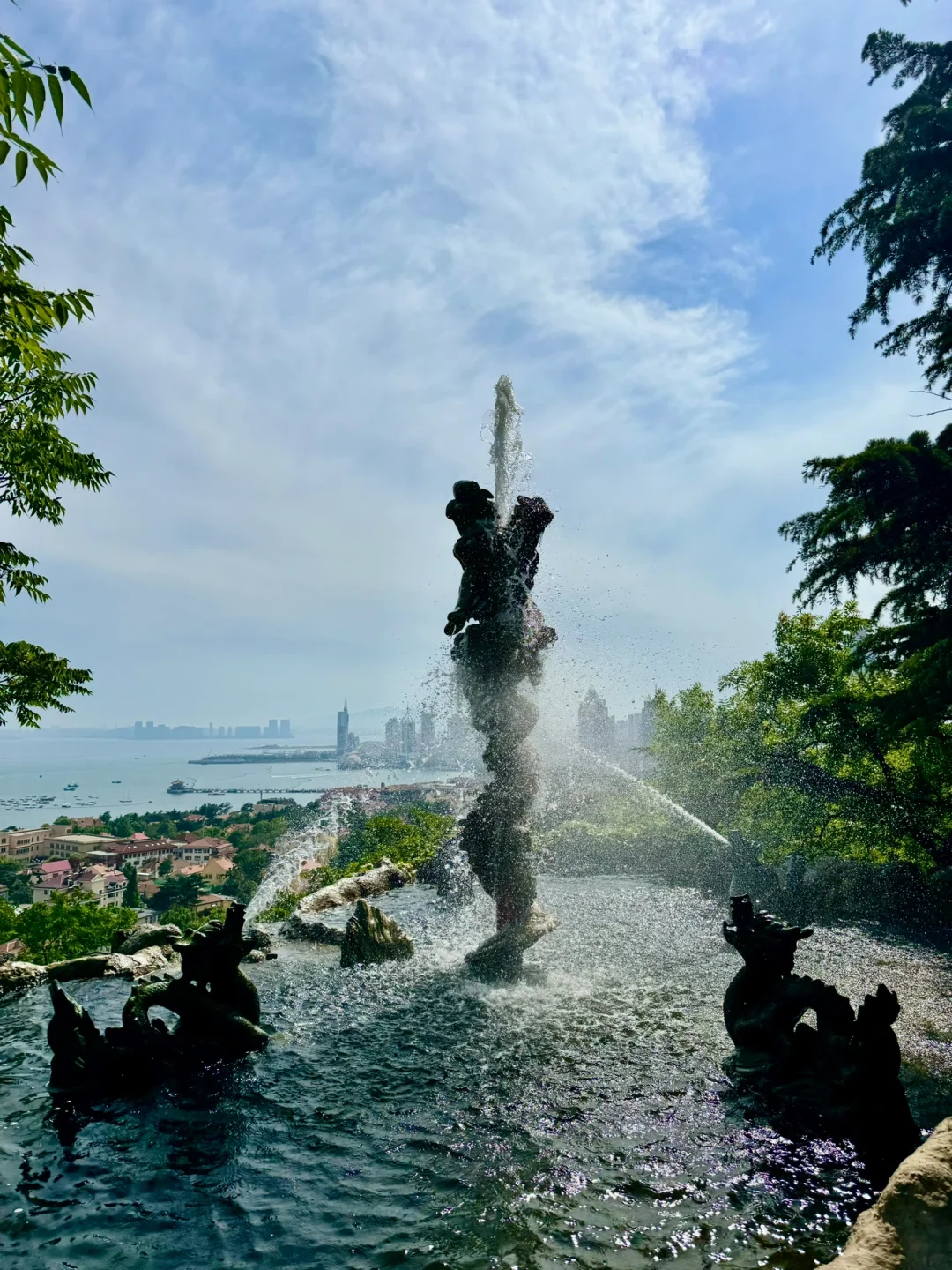 4️⃣五龙谭:透过喷泉⛲️拍栈桥