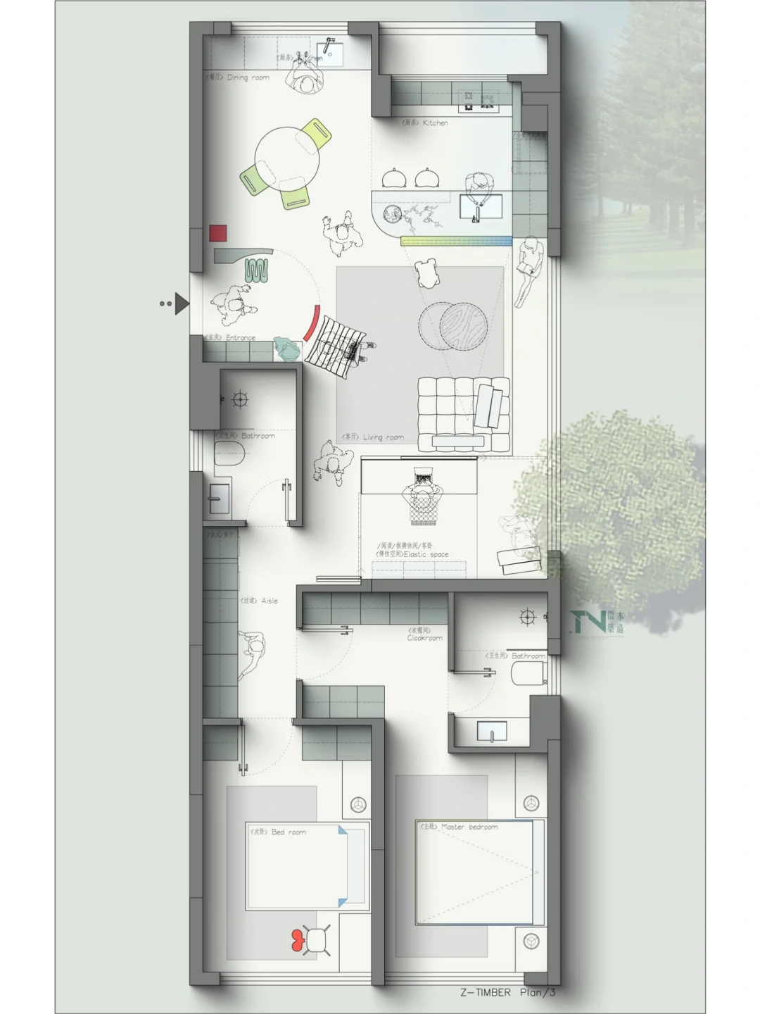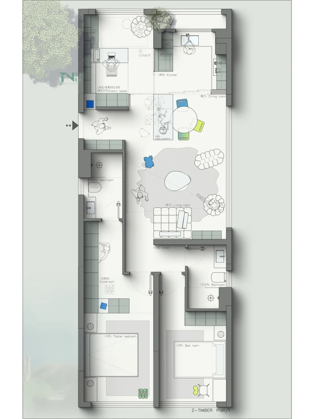 设计需求: 1、一家三口 2、主卧套间,衣帽间 3、小孩房间 4、一个书房(需要在家办公) 5、想要有趣点的空间