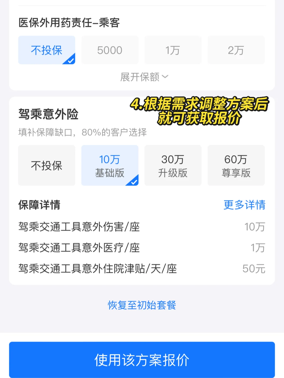 (保乘客和司机,不论谁的责任都可以保,但要注意不常跑高速的可以不选,如果搭配保司的套餐型驾乘险选基础的就行)