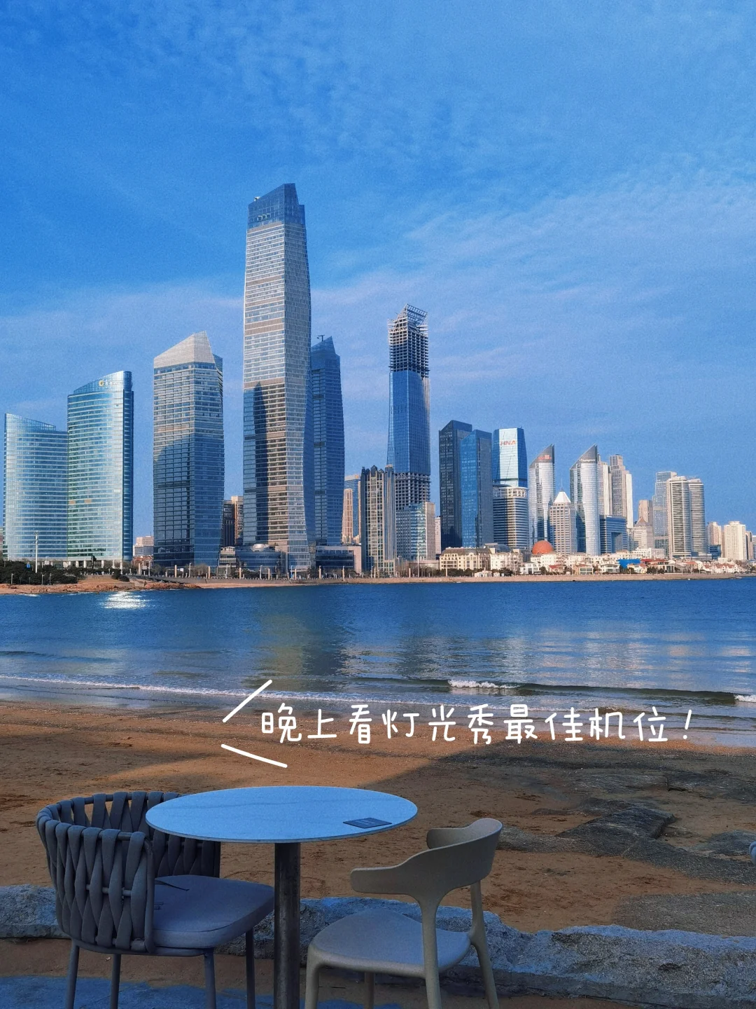 2⃣沙滩右侧一杯沧海咖啡,门口桌椅+大海+高楼大厦,氛围感直接拉满,随手一拍都是曼哈顿既视感~图7