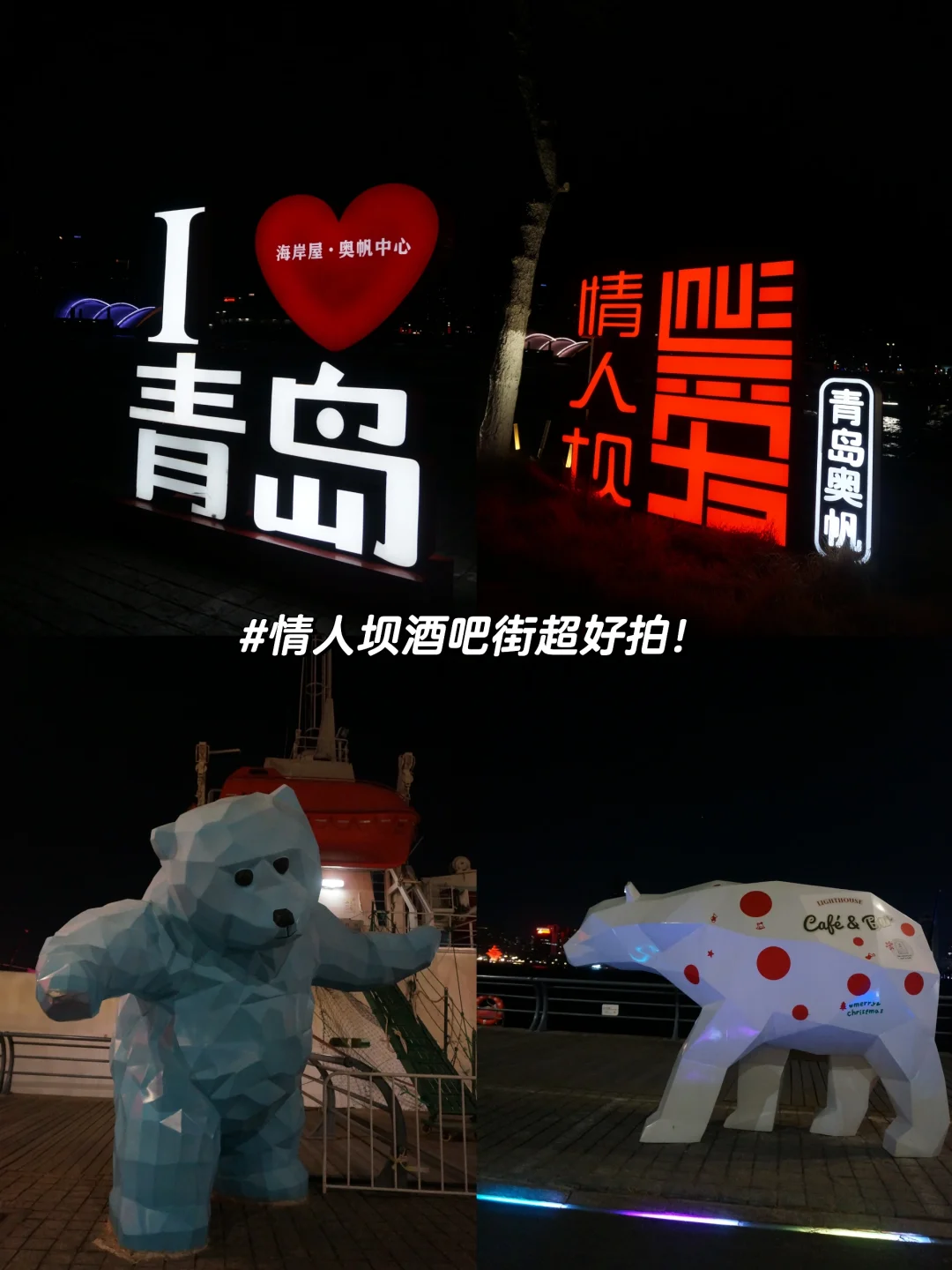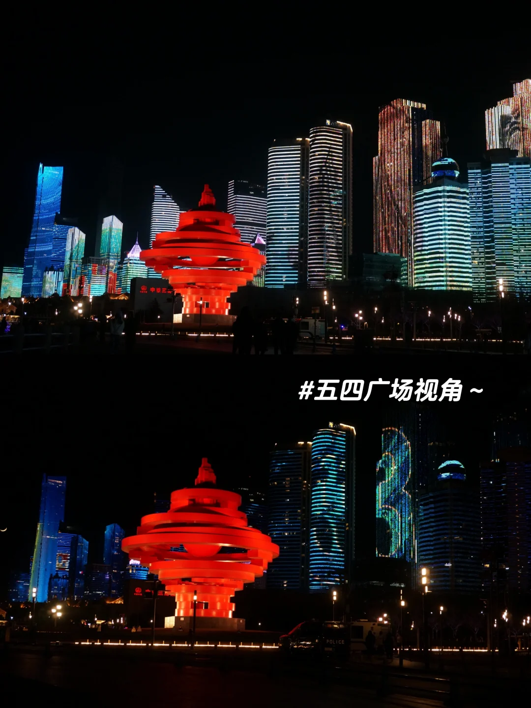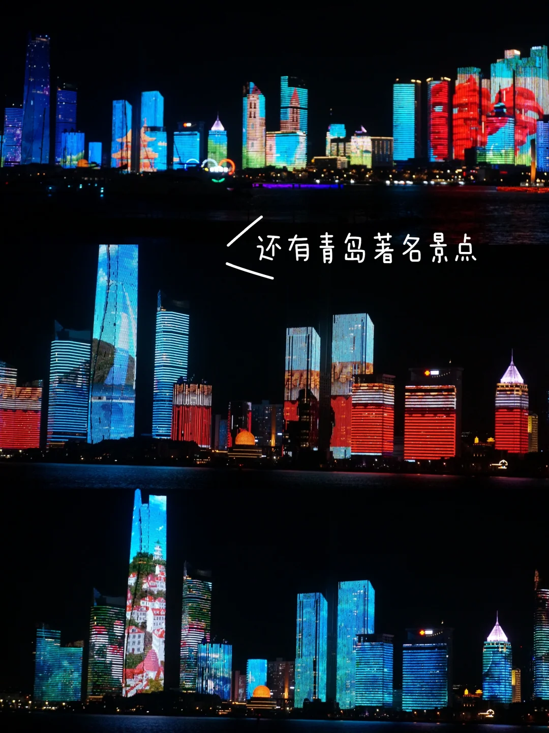 只能看到局部灯光秀,位置不正,太近了不是很出片~如果想拍青岛标志性建筑五月的风可往奥帆中心方向走,上一个木桥,视野还不错~