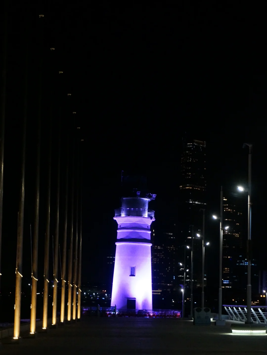隔着海可正面拍浮山湾灯光秀全景!位置最正,视野开阔,光影不会重叠~真的很壮观!想拍全景,横屏录视频的小伙伴不要错过!还能拍到对面的五月的风~再拍一拍灯塔也是不错的👍