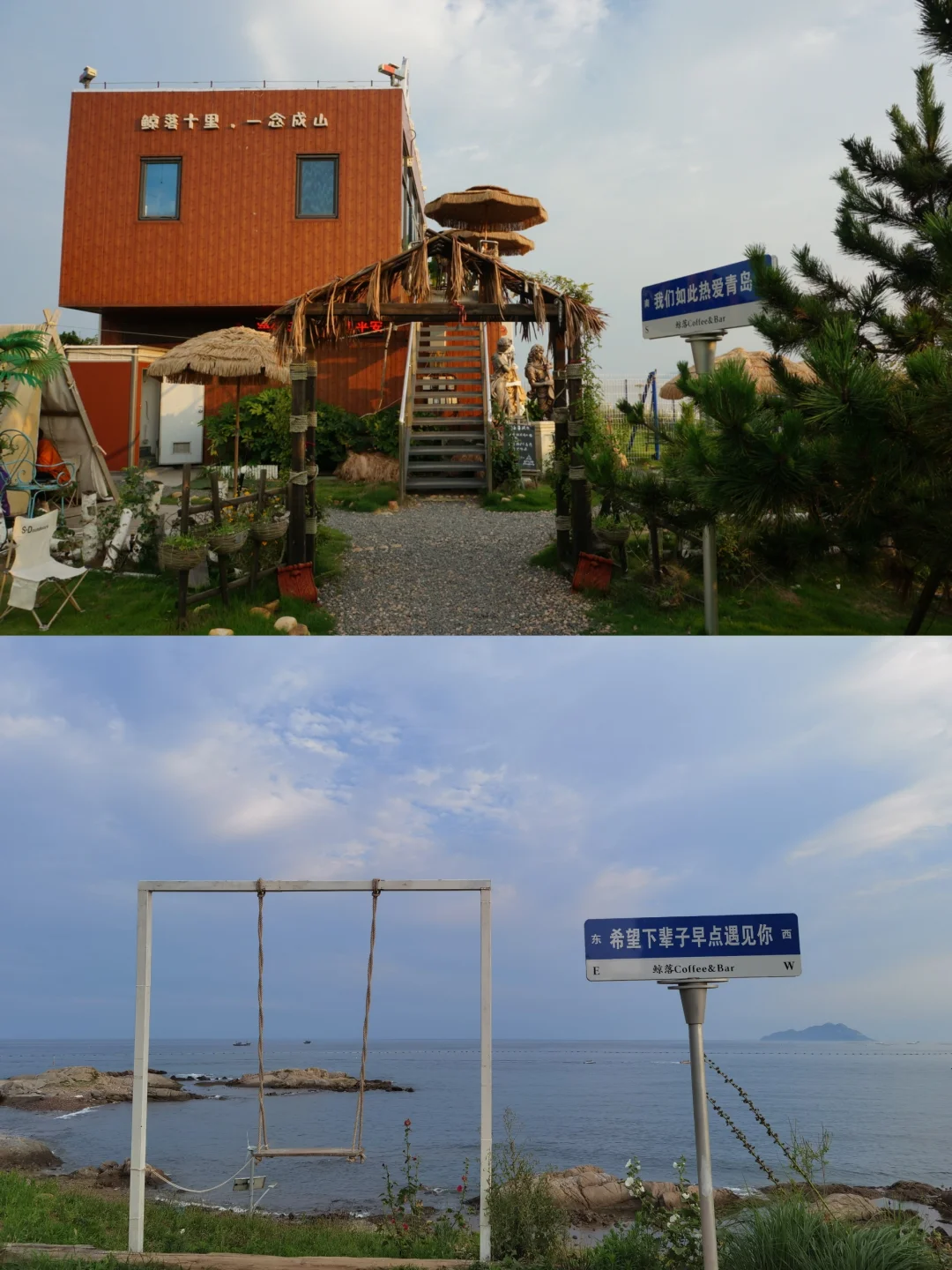 ✅鲸落咖啡☕️:穿过金沙滩就到这个咖啡店,海边秋千很出片📷,前边停靠渔船位置是最佳落日观赏地!海面金光粼粼的超美~P16-18