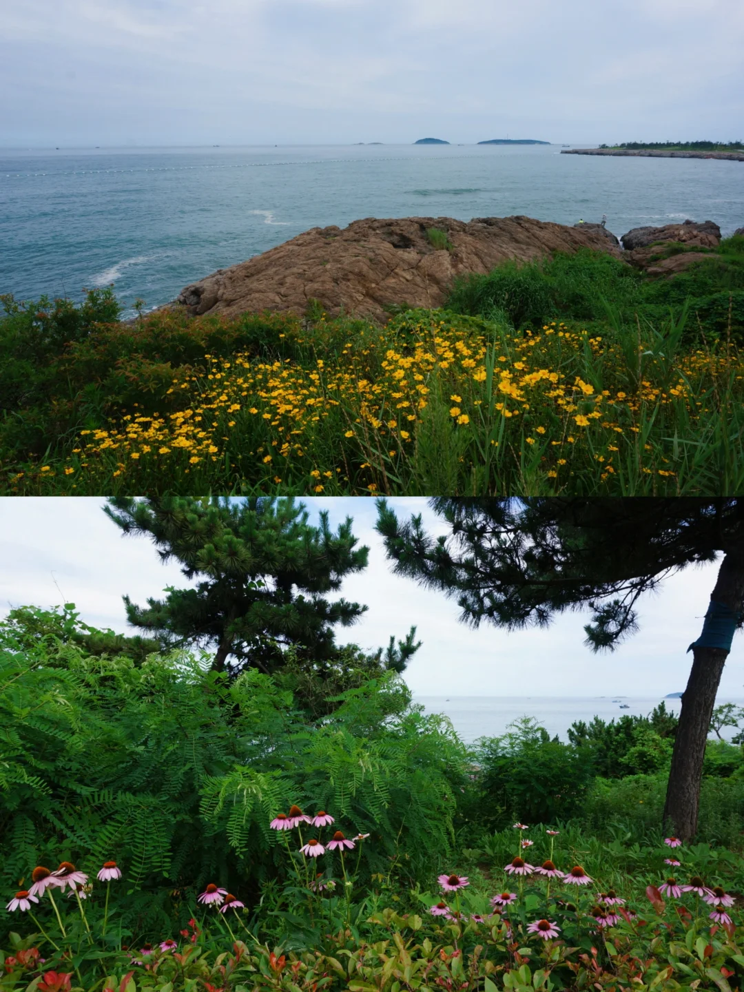 ✅山涧溪谷🌼:从坡上来往前走去山涧溪谷,本地人都可能不知道的地方人巨少!有礁石有木栈道有无敌海景!一人称霸海岸线简直不要太爽!跟海神庙那段确实有不同,绿色植被要多一些,像极了丛林探险~敲重点!这里还有成片的小黄花🌼!要来的朋友抓紧喽~P1-9