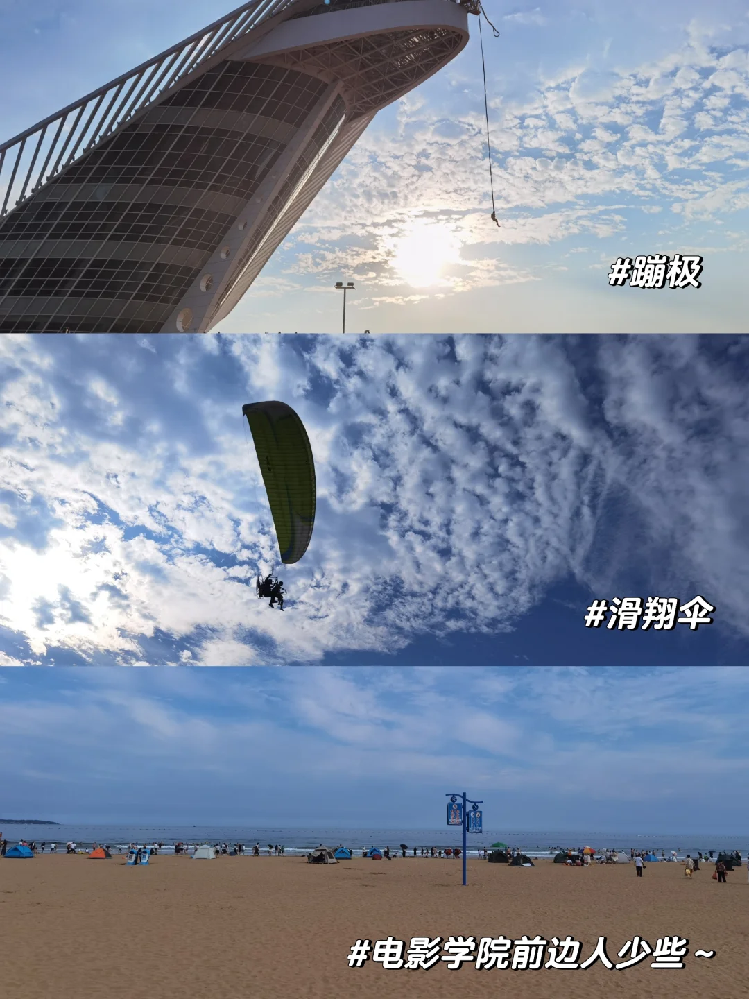 ✅金沙滩🌊:是中国沙质最细,面积最大,风景最美的沙滩,号称亚洲第一滩👍👍第一次来推荐去~看很多人说人太多,水很绿,那是因为没找对地方!从山涧溪谷坐808下来电影学院下车,开车导航电影学院公交站,前边的沙滩人少很多,水也干净没有苔!别去啤酒城那边,水确实绿人巨多~P13-15