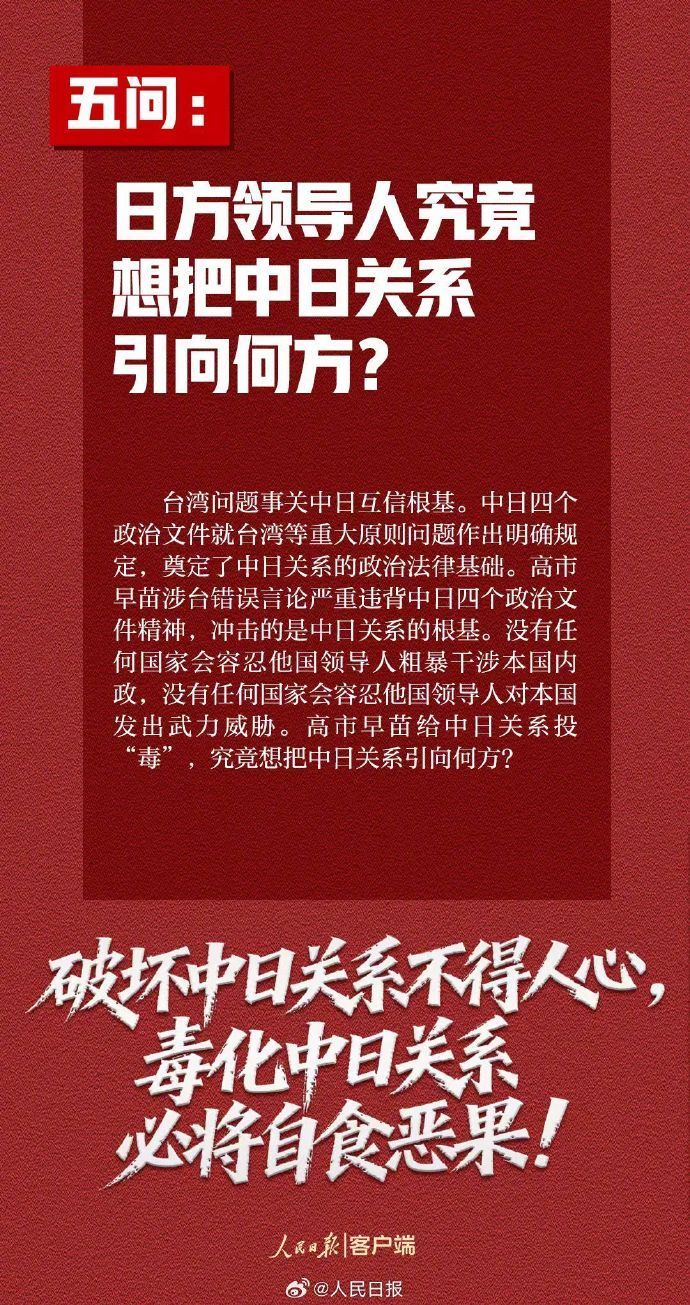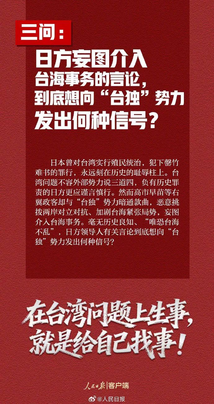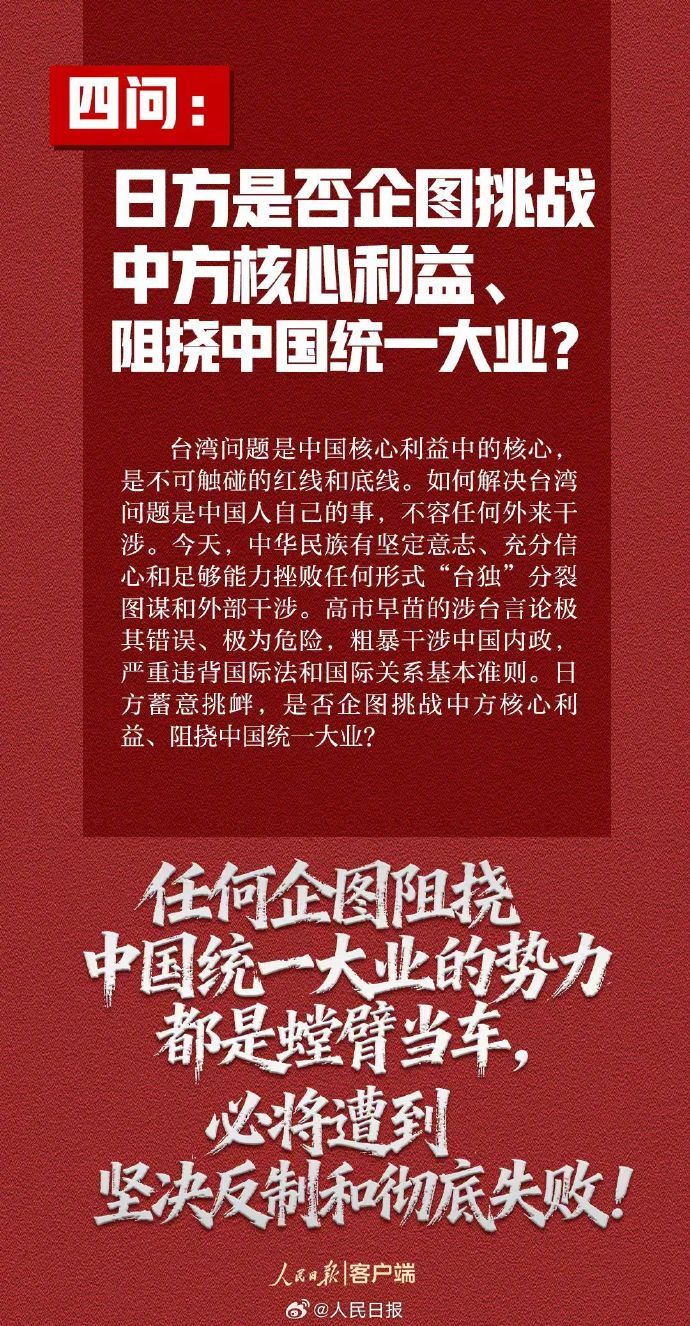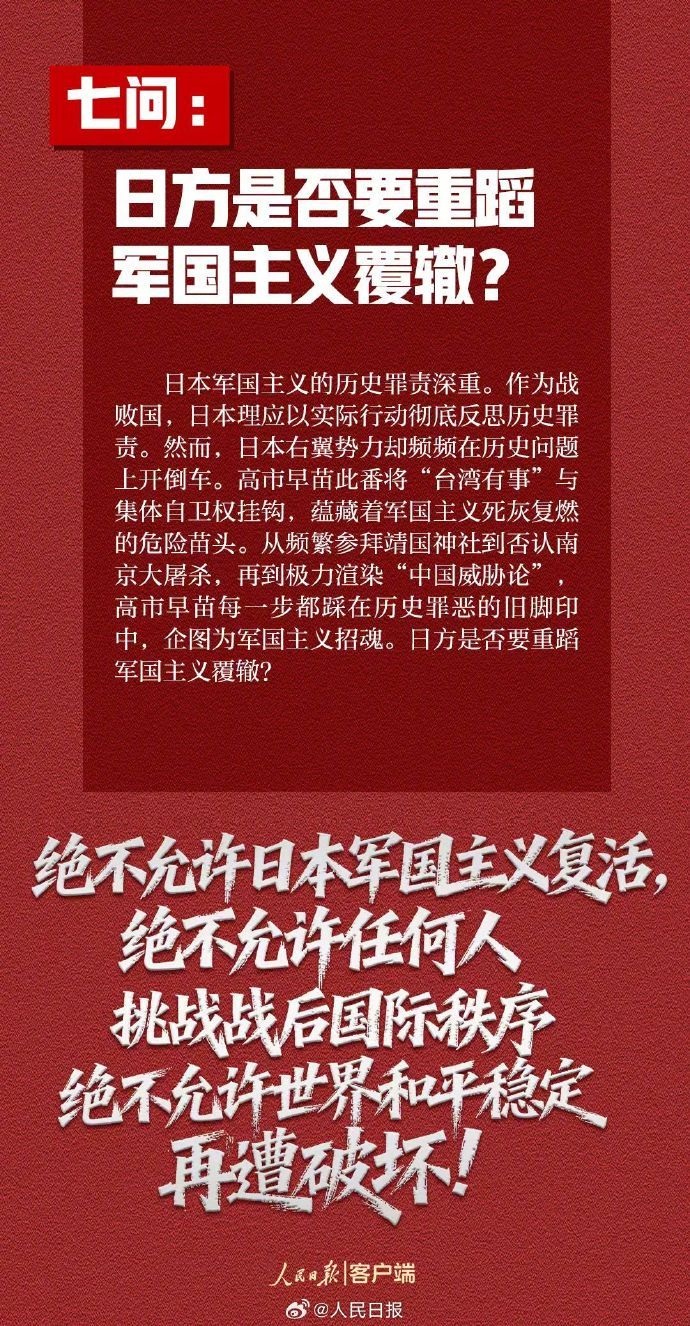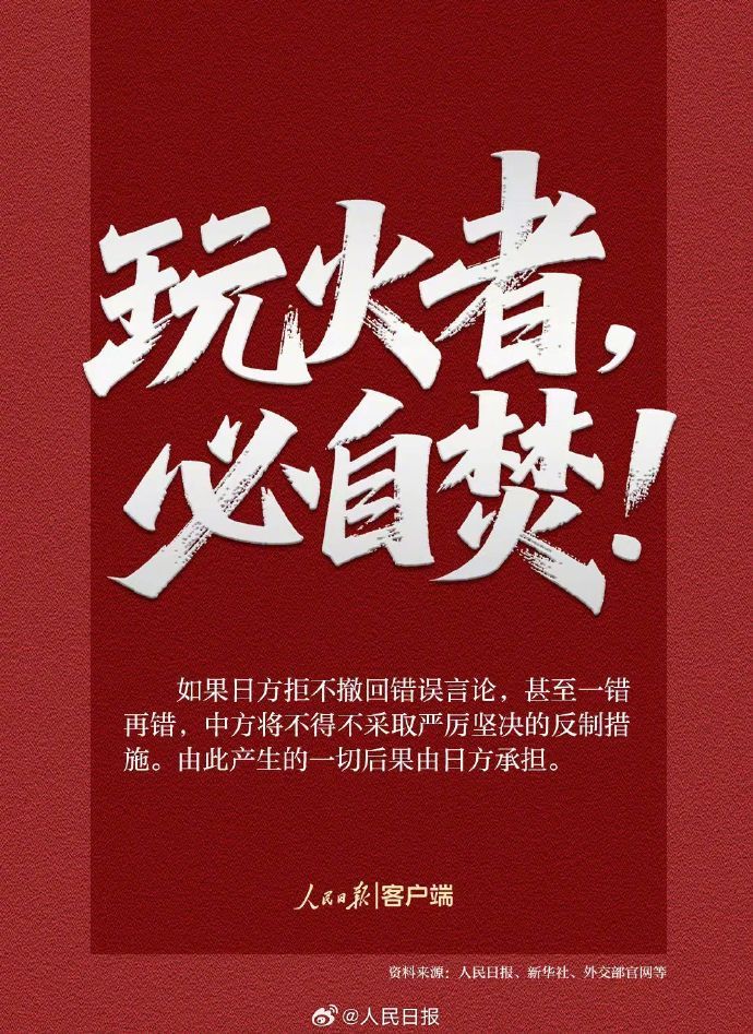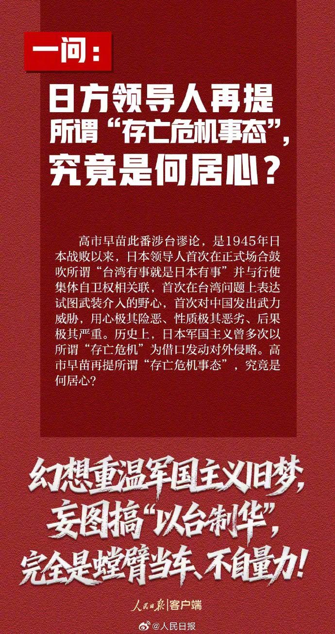 在中方多次严正交涉后,日方仍不思悔改,拒不撤回错误言论。这种粗暴干涉中国内政、公然挑战二战后国际秩序的错误言论,引起举世哗然,令正义人士强烈愤慨。日方到底意欲何为? (人民日报)