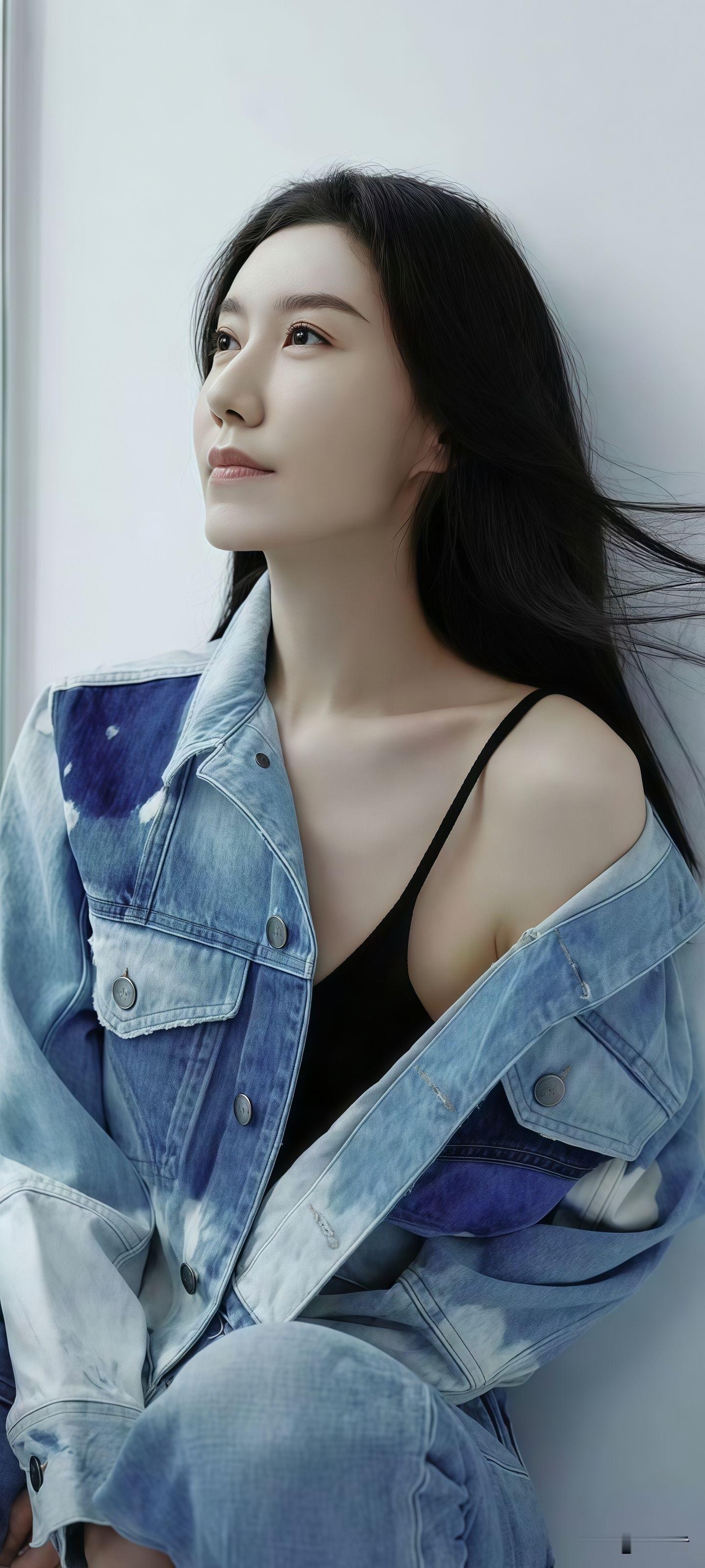 明星丨写真刘浩存的一组蓝色穿搭图片~