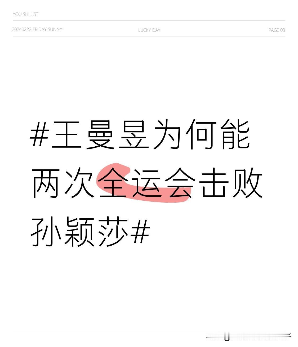 2025年全运会女单决赛,王曼昱4 - 2击败孙颖莎成功卫冕,这已经是她连续两次在全运会掀翻孙颖莎。今年两人六次决赛对决各赢三场,实力旗鼓相当,但这次胜利偏向了王曼昱。 比赛中戏剧性十足,第三局孙颖莎10 - 8领先被逆转,第四局崩盘。虽然后面孙颖莎靠意志力在第五局救3个赛点,第六局也有8 - 2的开局,却还是连续丢分。邓亚萍评价她们是“超一流选手”,但指出孙颖莎心理气场不足。王曼昱能顶住压力,坚韧的表现助她两次在全运会击败孙颖莎。