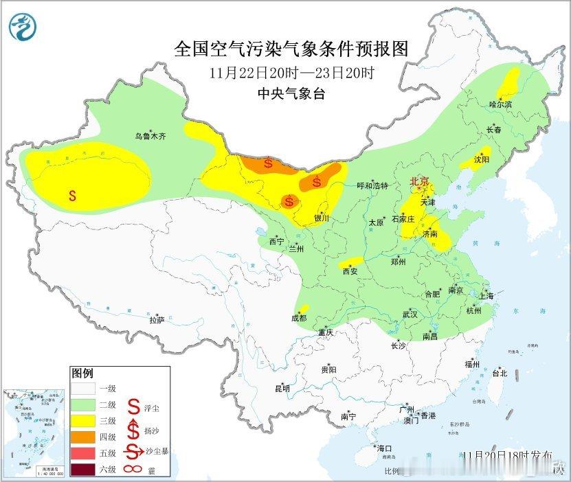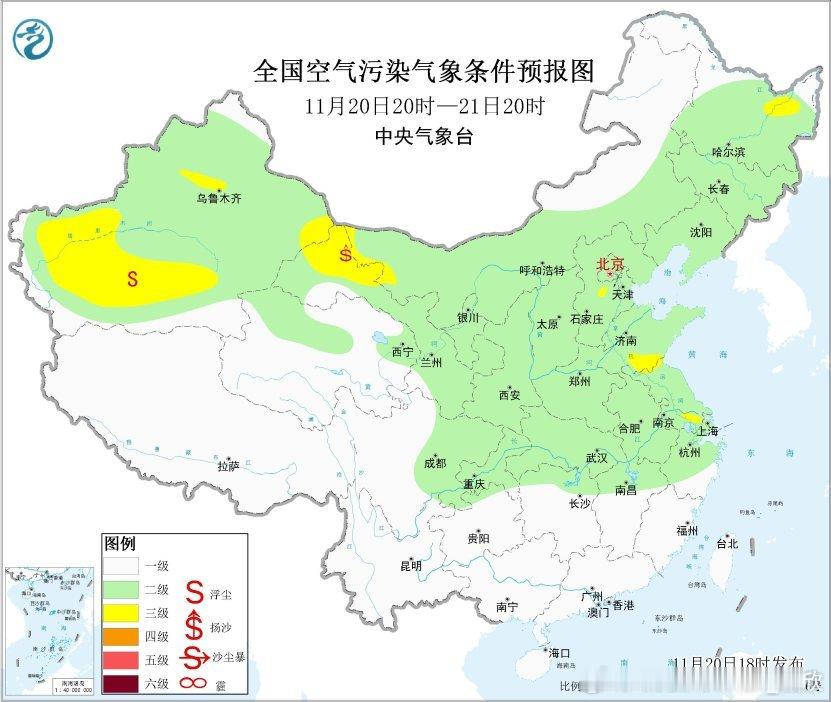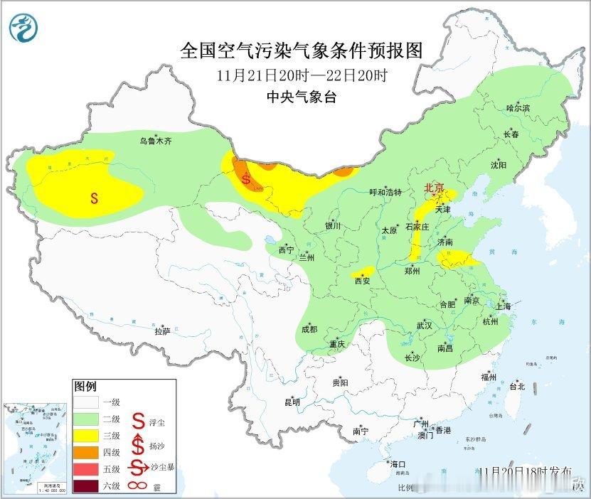 从今晚20时空气质量监测看,呼和浩特出现了重污染,首要污染物为PM2.5,对应有霾。不过白天呼和浩特的空气质量不错。这个可能是夜间取暖导致的排放加大,另外夜间气温下降后,边界层高度下降,污染物被压缩到相对贴近地面的区间,即便分子(污染物)不变,分母(容积)减少,导致比值(污染物浓度)提升。未来3天,北方部分城市可能还会看到这样的昼夜变化,白天气温上升,边界层高度提升,污染物稀释并且部分污染物随着较高层面的风离开,污染浓度下降。反之到了夜间,污染浓度会有上升。此外,22-23日因为冷空气活动,在新疆、甘肃、内蒙古、宁夏部分地区可能还有些沙尘出现。