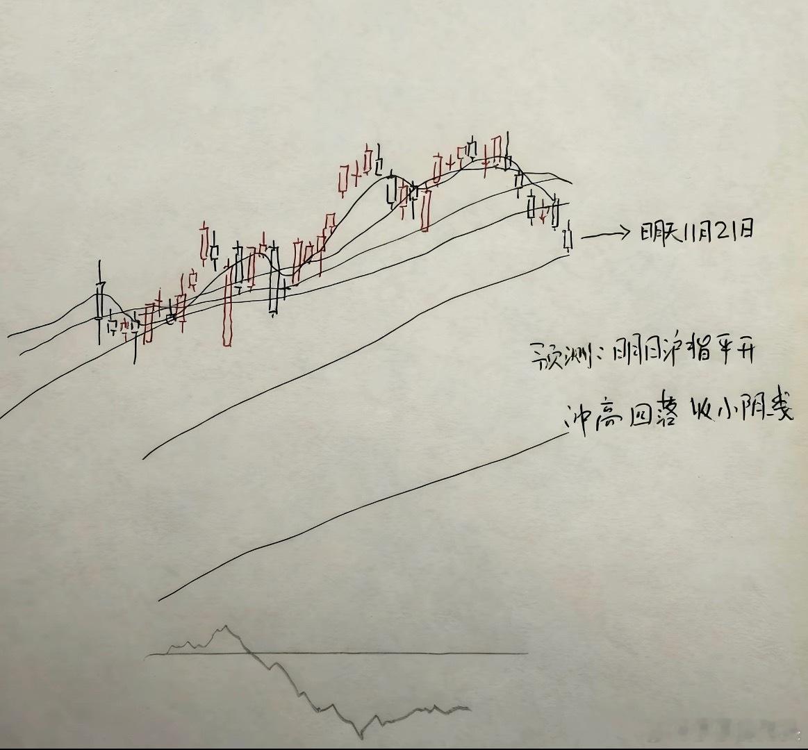 今天A股在两大利好的消息下高开低走三大指数收阴线,那么明天A股怎么走呢?莎莎做了一个大胆的预判,兄弟们听说说两三个三个具体理由第一,从图一上证指数的角度来分析,上证指数今天高开冲高之后,明显受到了上方5日以及10日、20日均线的压力,出现了冲高回落的情况。同时今天的下跌也再次确认了短线上升支撑线被跌破之后,变成压力线的压力。第二,今天市场其实是有两大利好消息的。所以我们才看到了A股市场早盘出现了明显的高开。第一是券商板块的利好,券商重组合并的消息。第二是来自外围市场人工智能的利好。但是这两个消息面只是刺激了早盘的高开,而且高开之后,市场在高点停留的时间非常的短。利好消息之下,主力资金没有高举高打,反而利用利好消息展开了短线的出货走势。这是一种市场短线走弱的明显表现。第三,今天创业板指、深证成指均以实体阴线的形式跌破了60日均线的支撑。60日均线是一条重要的防线。六十日均线失守之后意味着市场将会向更深的支撑点去寻找支撑。所以,综合以上分析,莎莎认为明天上证指数或者短线走出一颗小阴线的走势。向60日均线去靠近,寻找60日均线的支撑。那么明天A股到底怎么走?大家请看图二关于明天走势莎莎手绘的预测图虽然莎莎对于明天市场走势做出了调整的判断,不过这里确实还存在一定的转机。因为今天市场从技术面来看,上证指数并没有跌破3922点的前期低点的支撑。3922点低点没有跌破,那么也就意味着短线小双头还没有成立。市场依然处于可控的箱体走势,如果今天晚上外围市场出现比较良好的走势,明天A股市场硬科技板块出现反弹的话,莎莎认为明天如果小幅度反弹一天,其实这种可能性也是比较大的。当然,我这么说并不是说我是一个模棱两可的态度。手绘图画出来之后,我对于市场走势的倾向性已经非常清晰了。大家点赞,评论➕关注就是对莎莎这个纯技术派的最大支持。