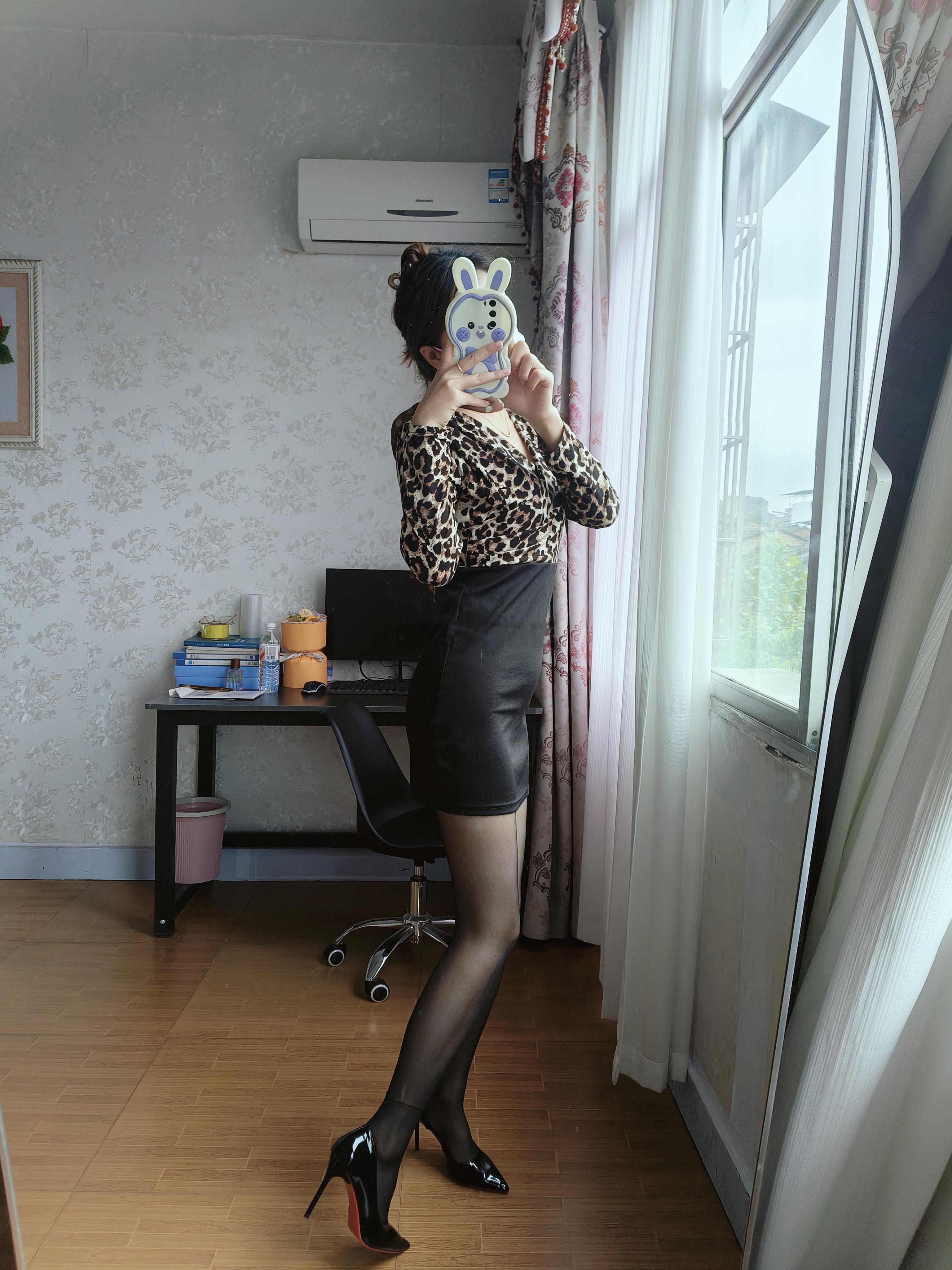 豹纹上衣配黑丝,我就是办公室的女王👑