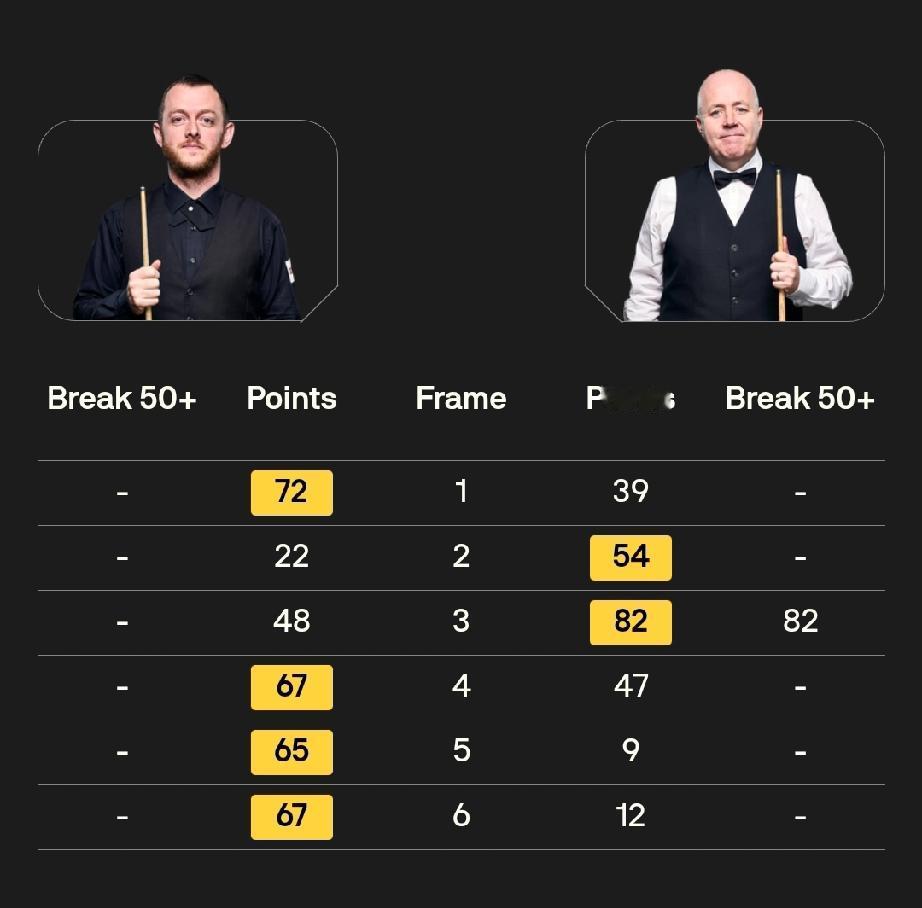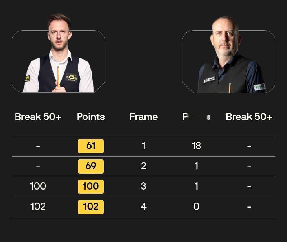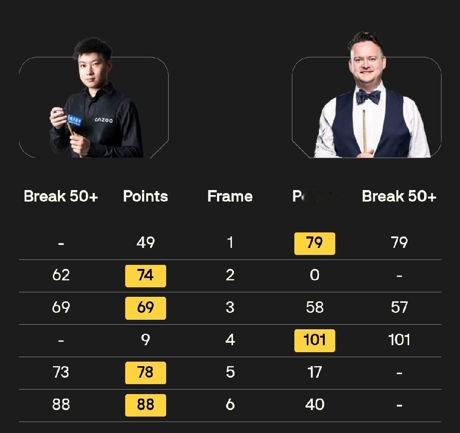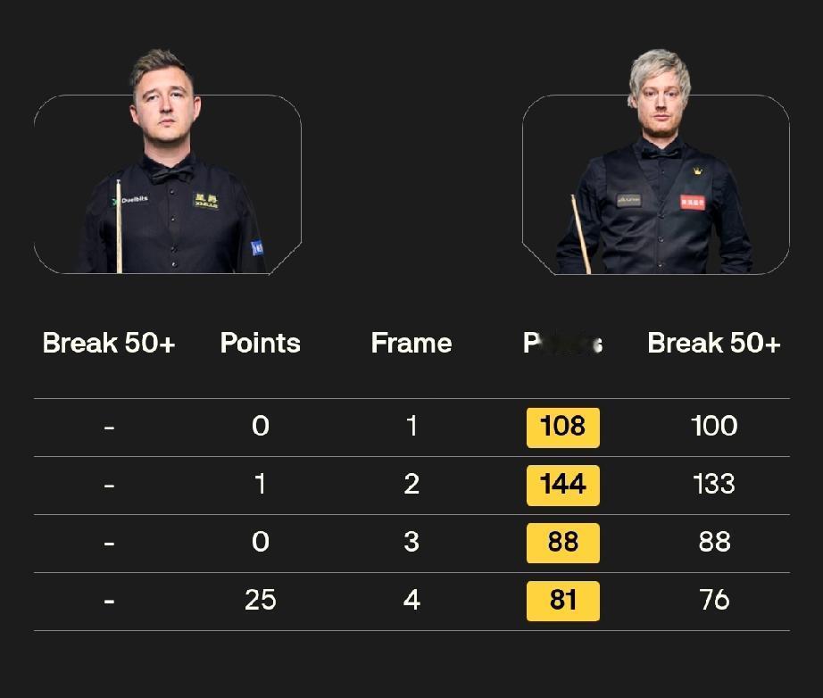 赵心童4-2肖恩·墨菲 马克·艾伦4-2约翰·希金斯 尼尔·罗伯逊4-