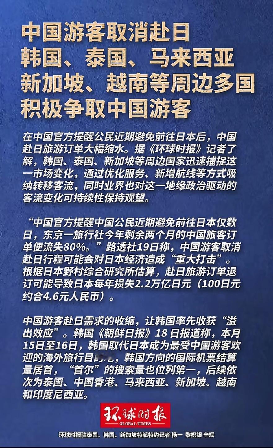 乐意花钱让中国游客别来,人均1万8,就能把中国坏游客挡在门外!中国游客不来,对日本反而更好。去消费好像是打扰到他们了,赚钱赚得那么为难何必呢,我们退出,然后看他们的旅游业慢慢转型。不过萨瓦迪卡,说实在的东南亚有点悬,大家最好考虑一下,多为自己的人身安全考虑。