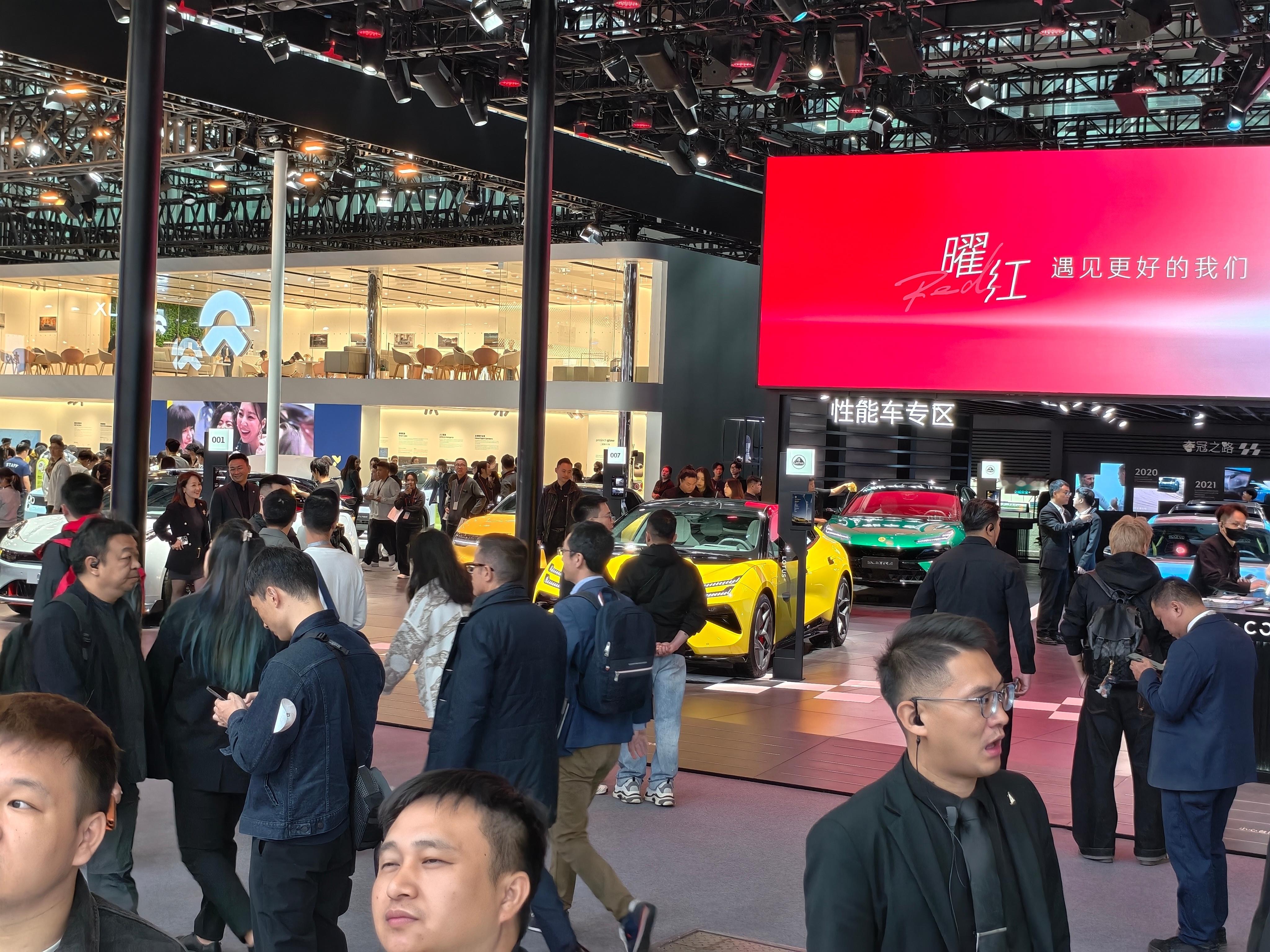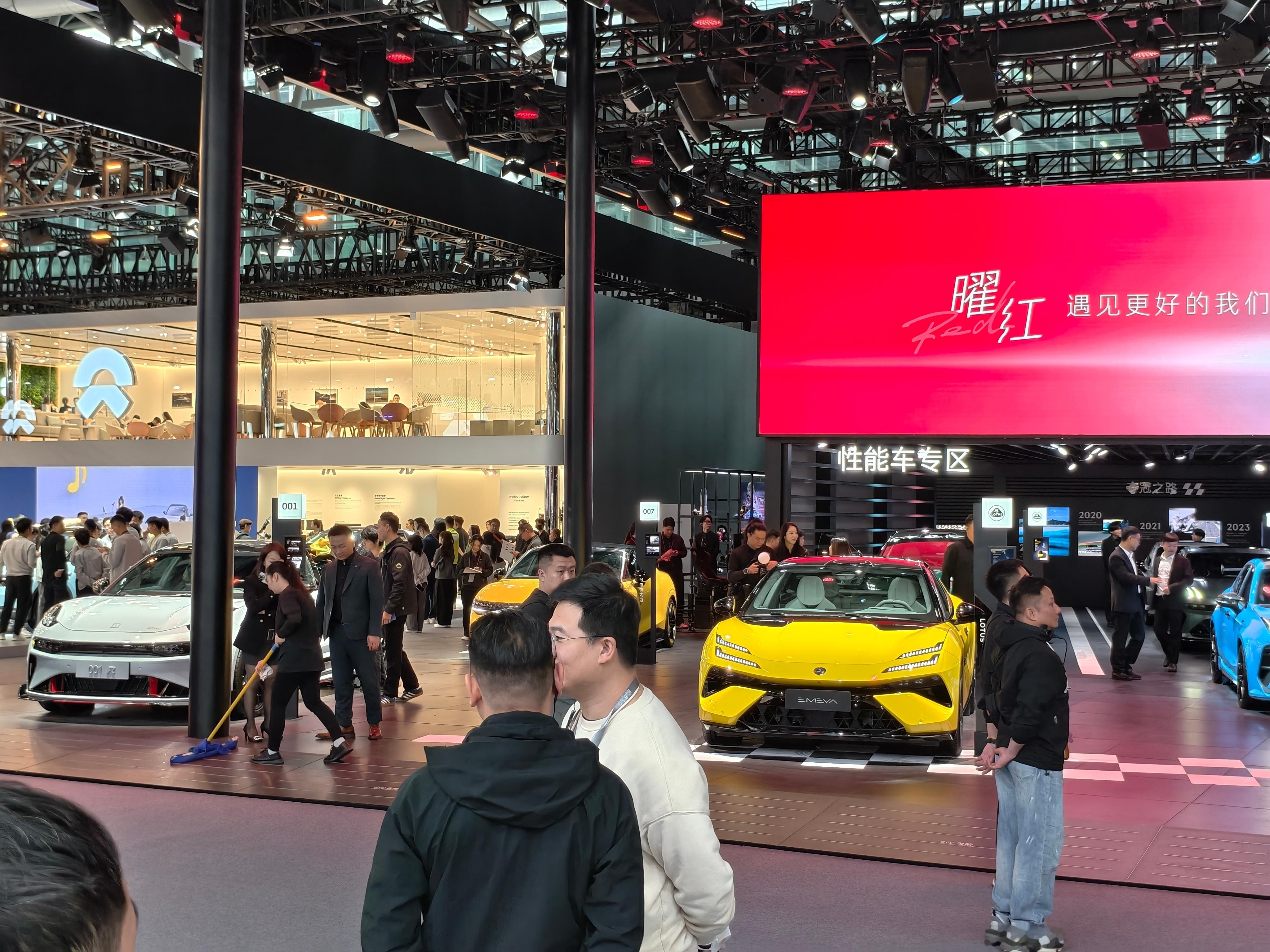 领克展台搞了个性能车专区,里面除了 03+ TCR,还放了路特斯 Emeya 和 Eletre,极氪 007 性能版和 001 FR…这是吉利控股性能车专区是吧。