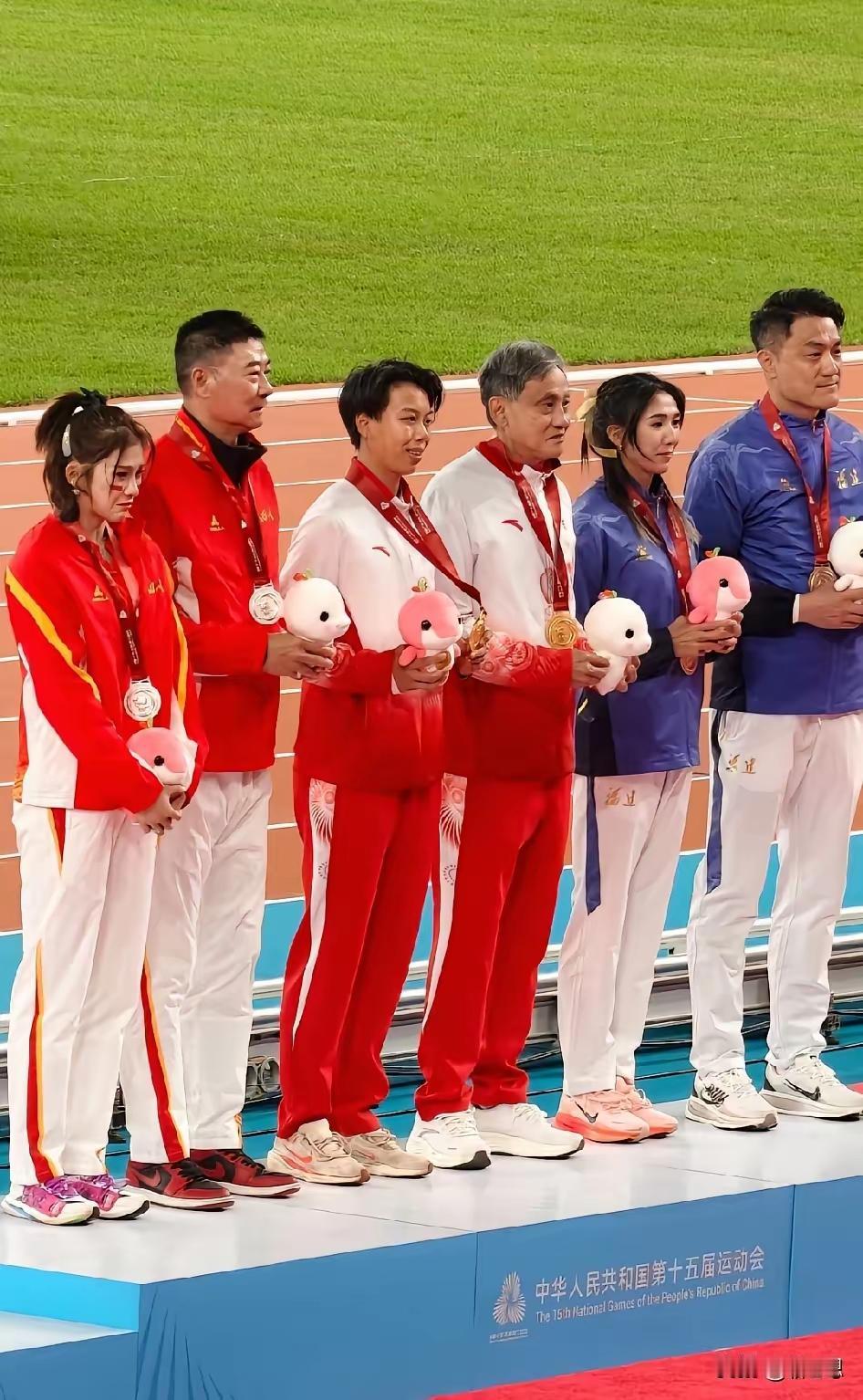 刘景扬让我感觉到了广东精神,看她领奖时候的松弛。 一排6双运动鞋,她的最独特。 三位女性,她纯素颜! 上次全国田径竞标赛刘景阳形势大好的情况下领先吴艳妮很多最后时刻摔倒那时候的痛苦又有谁知道和理解。我们福建的林雨薇也挺好的到哪里都是大大方方的。 最意外的是刘景阳的三级跳教练,主项没有机会在大赛上露脸,没想到搞了个副项居然站在了全国最高的领奖台上! 刘景阳参加三次全运会了也是个老将了,这次通过自己不懈的努力得到冠军也是应该的 ,谁说关注度高就必须得冠军的。