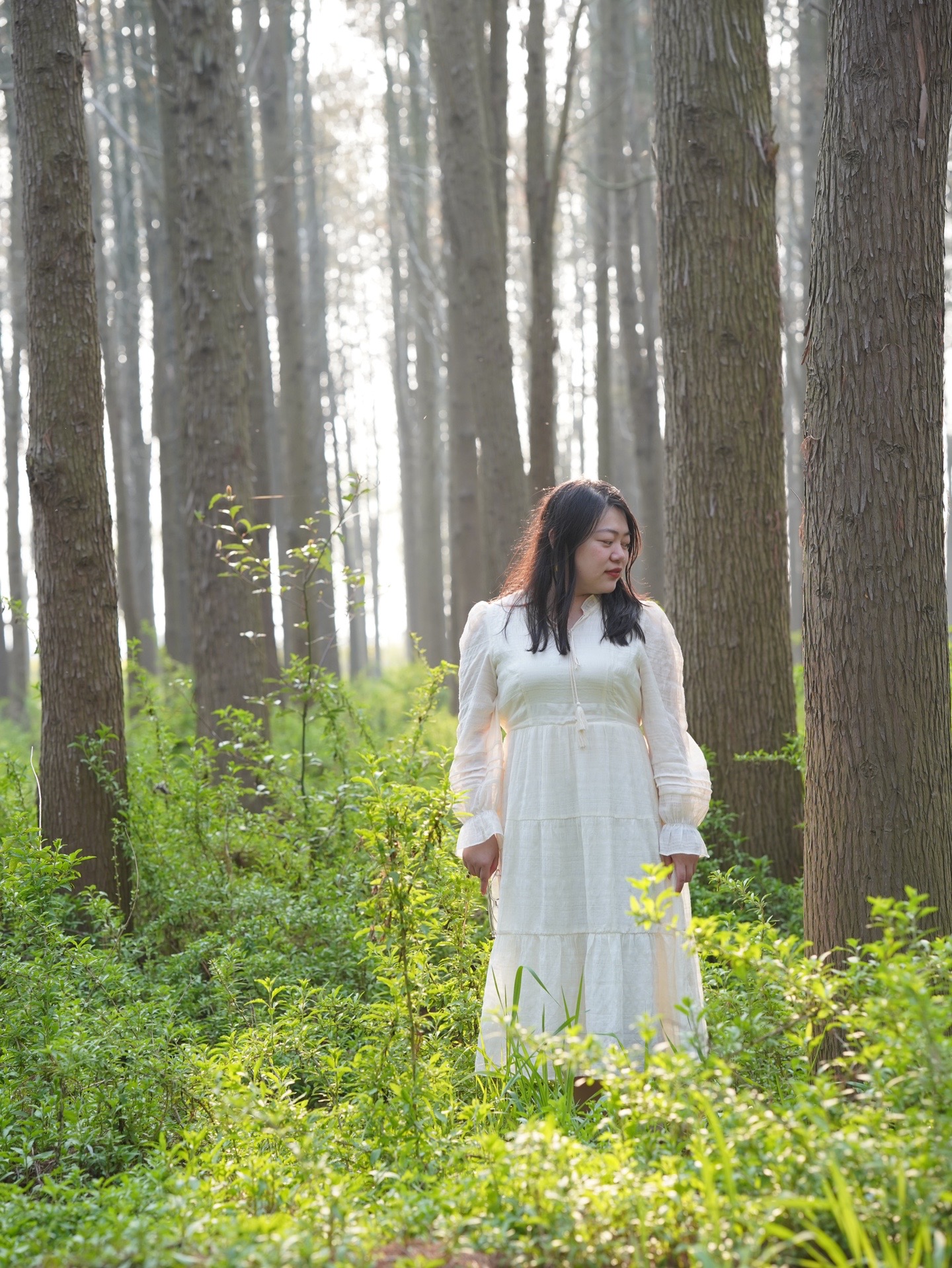 森林中的白裙少女,自然美与优雅的完美结合。😜