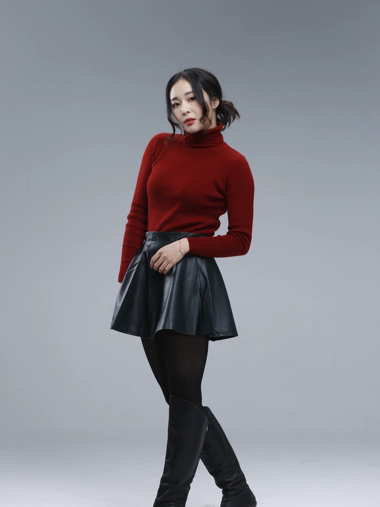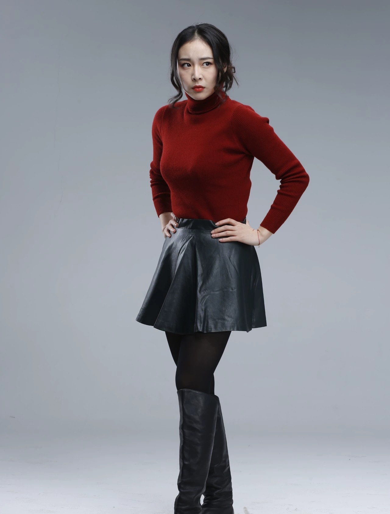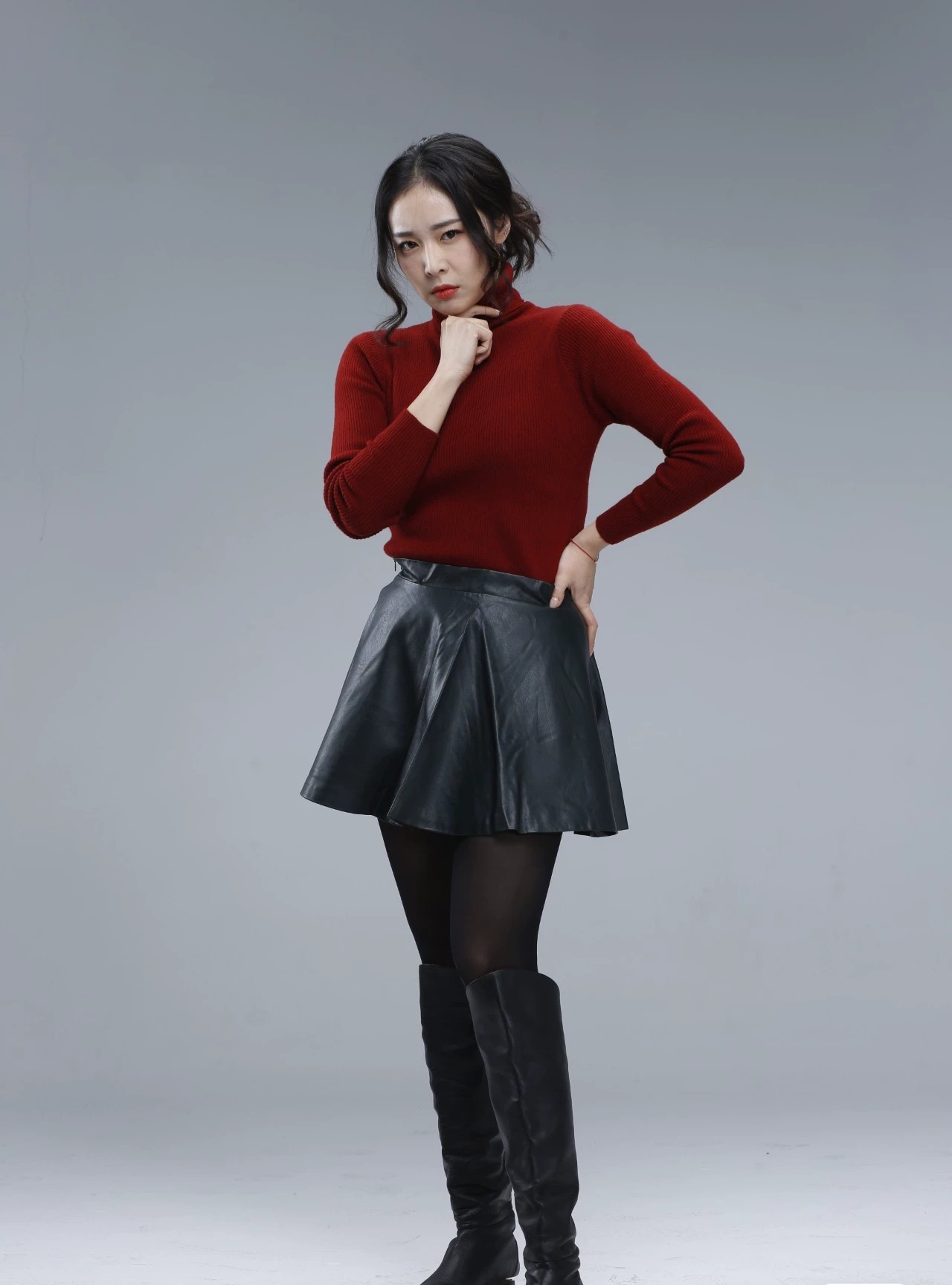 波浪形的大卷发,娇艳欲滴的烈焰红唇,上身穿着一件枣红色高领毛衣,下身超短皮裙搭配丝袜长靴,这是女神高叶早年拍摄写真时候的穿搭,没有花里胡哨的装饰品,也没有浓妆艳抹的脸皮,就算只是一身普通平凡的搭配穿在高叶身上也显得极具诱惑力,不得不说明星不是随随便便都能当的,随便往那一站就是行走的衣架天生的模特和服装代言人。