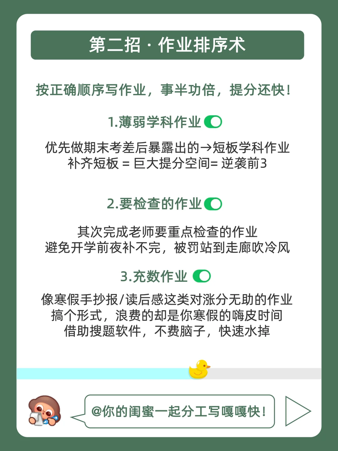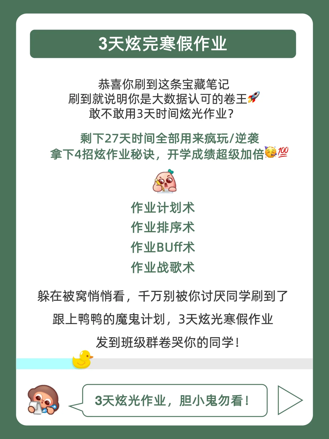 [赞R]寒假作业不用怕,鸭鸭带你飞速炫完❗️ · [哇R]拿下这篇寒假作业秘诀,学嗨玩爽就在于此!🚀 . 🐣我是鸭鸭,持续分享更多优质学习方法,陪宝子们快乐学习,驰骋学海!🌊