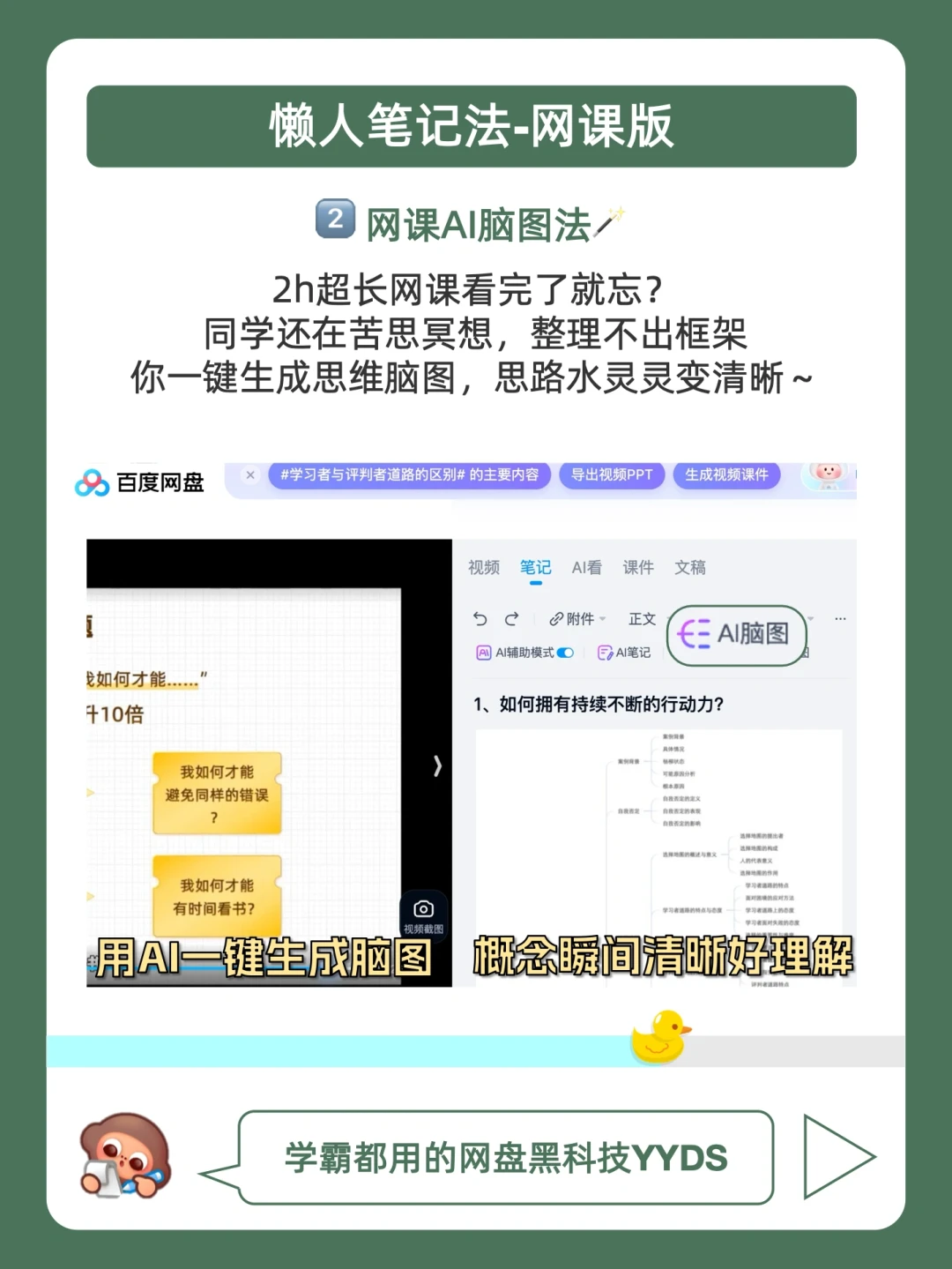 比如学霸上网课都偷偷用懒人神器【百度网盘】做AI笔记!