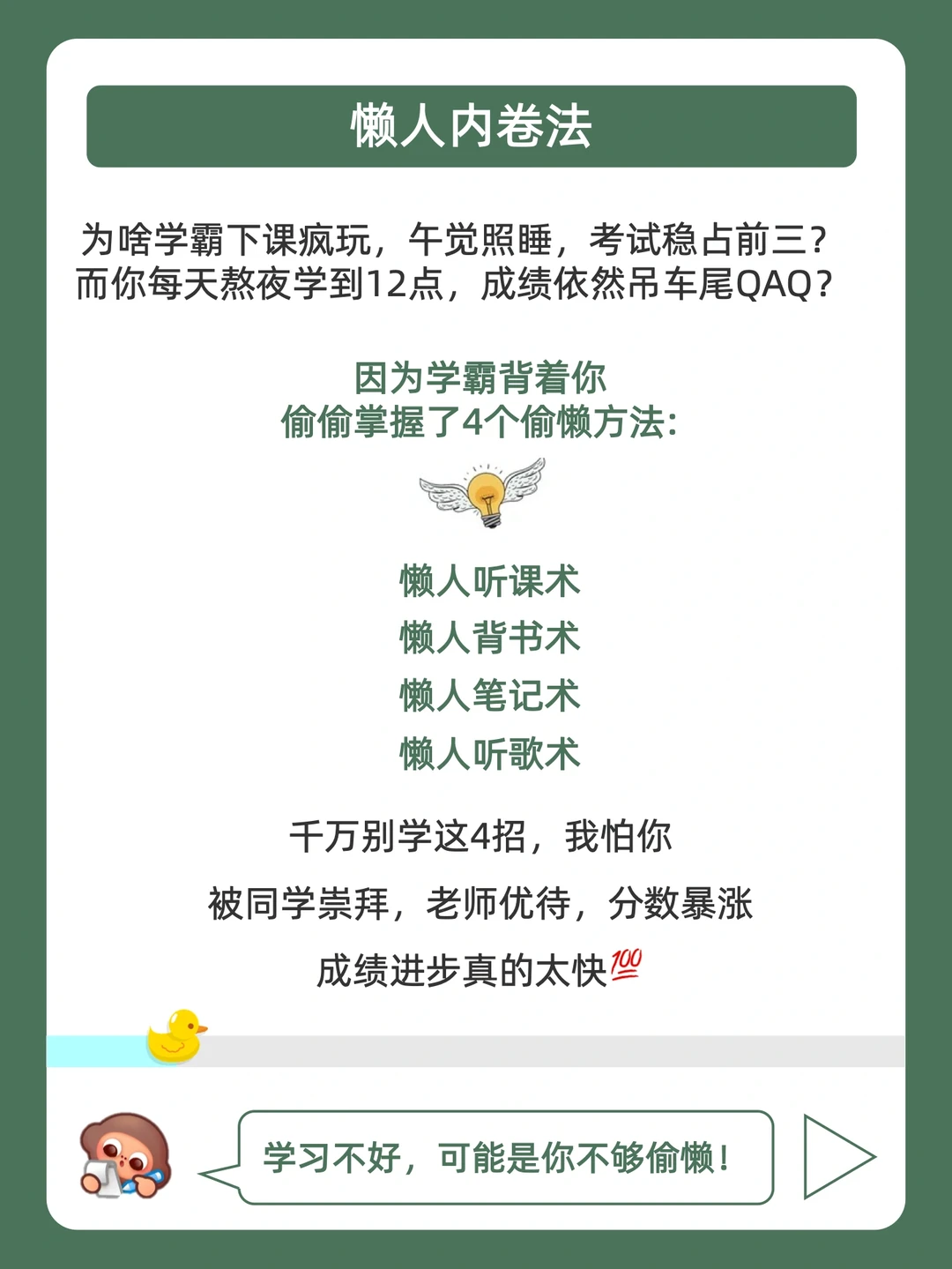 🐣我是鸭鸭,持续分享更多懒人学习法,陪宝子们学习开窍,考试开挂!💯
