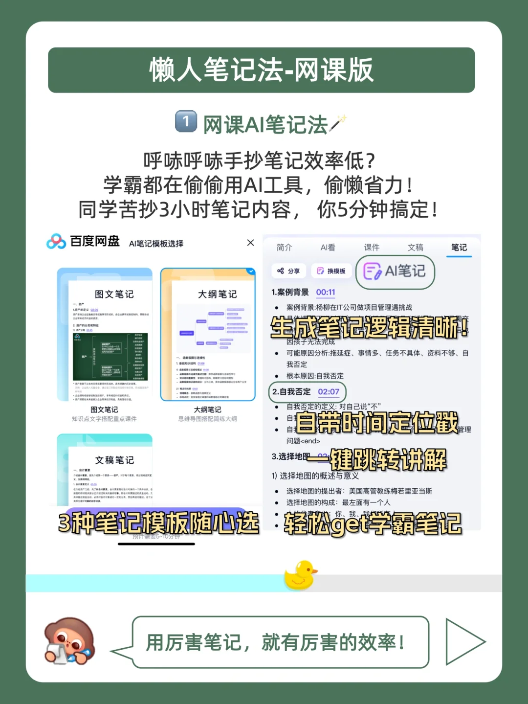 🤔平时懒得做笔记?3种AI笔记模板随心选,轻松get学霸同款笔记!