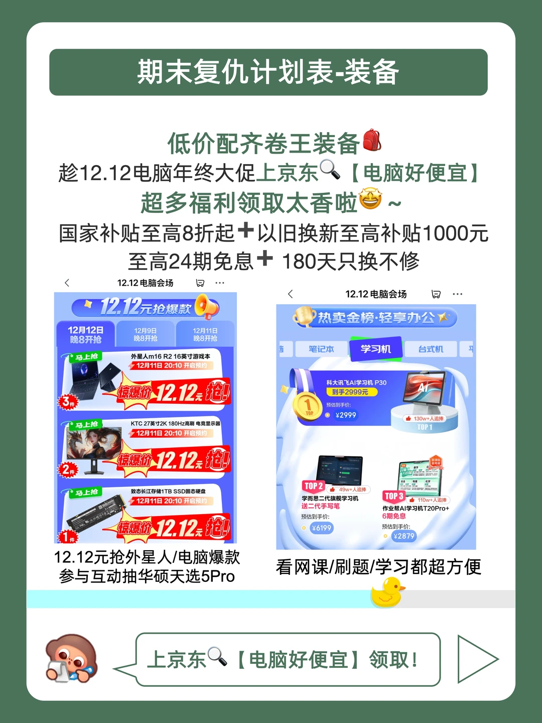 [向右R]咱们12.12直接上京东🔍【电脑好便宜】就能进入会场,各种电脑、设备随你挑选,各种电脑、设备随你挑选!它最高还有24期的免息,可以直接无痛购买!家里有旧产品的还能参加以旧换新,最高补贴到1000块!180天内只换不修太香了![哇R]