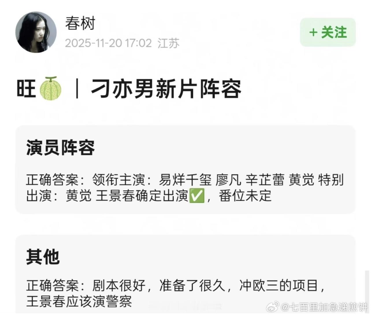 文牧野团队项目进度🍉:《鸦雀无踪》75生+00小花,明年Q1开网传人选是张译、
