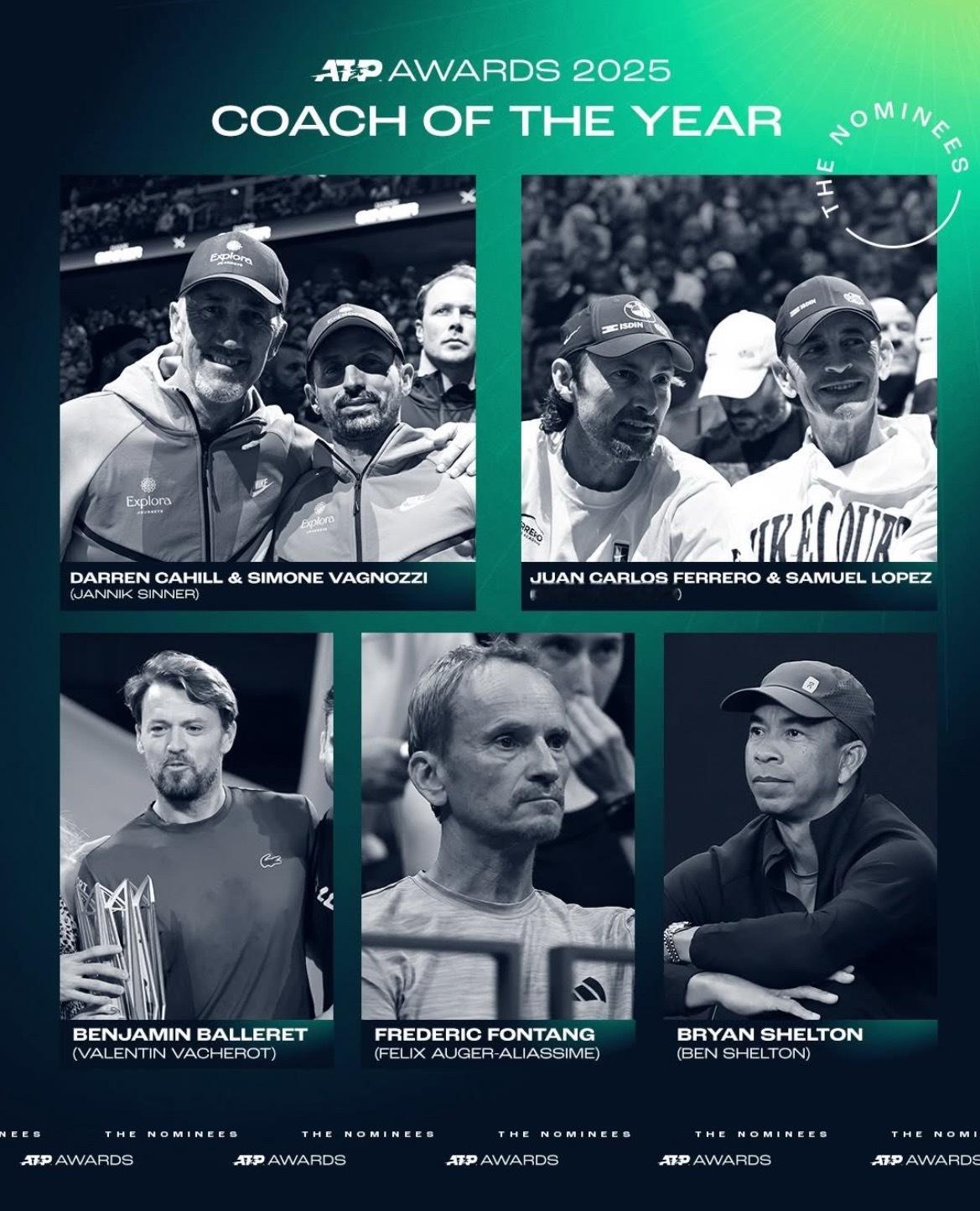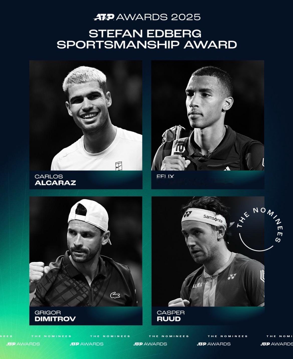 2025ATP年度奖项提名公布:年度突破球员:德雷珀丰塞卡门希克瓦舍罗年度最佳教练:卡希尔& 瓦格诺兹(辛纳)费雷罗&塞缪尔·洛佩兹(阿尔卡拉斯)巴勒雷(瓦舍罗)冯唐(阿利亚西姆)布莱恩·谢尔顿(本·谢尔顿)斯蒂芬·埃德伯格体育风尚大奖:阿尔卡拉斯阿利亚西姆迪米特洛夫鲁德