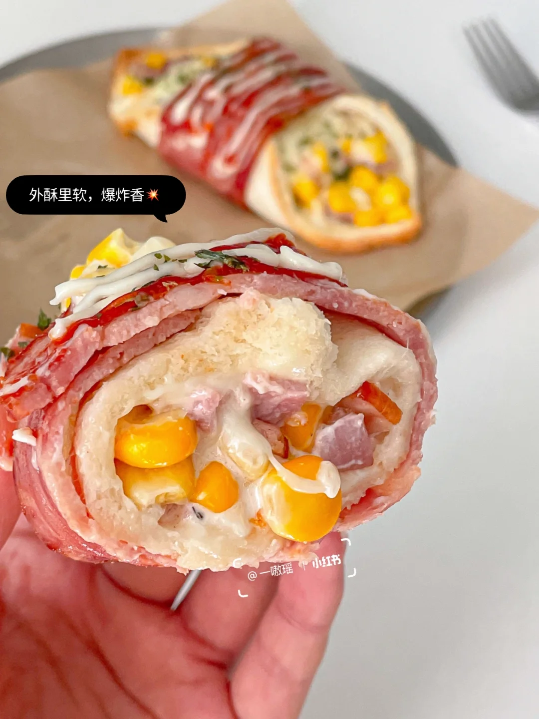 外酥里软,一口下去爆炸香💥 奶香浓厚的天然奶酪混合咸香的培根🥓,脆甜的玉米粒,口感层次超级丰富!