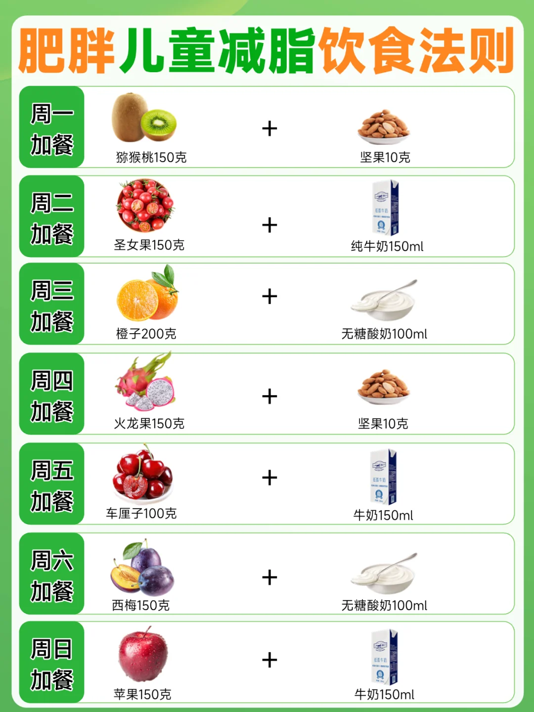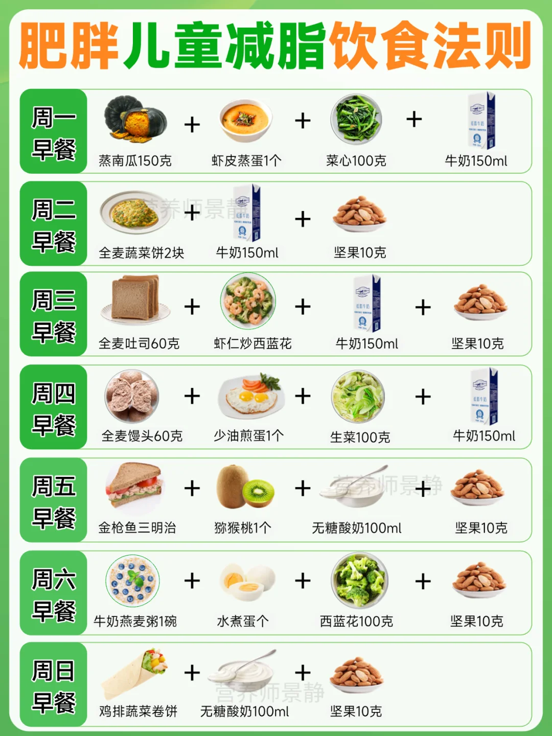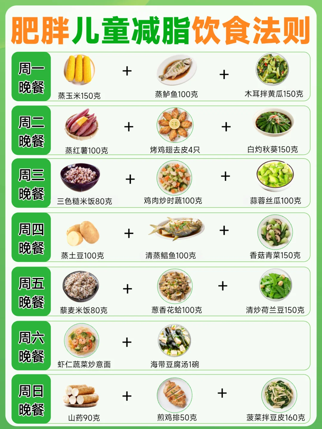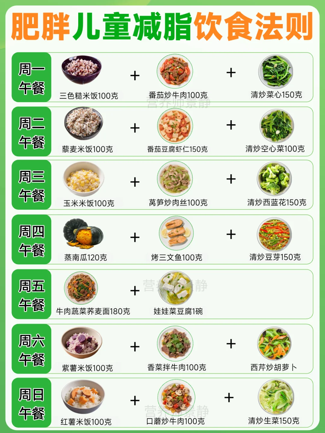 ✅今天分享的是为成长发育期、需要体重管理的孩子们设计的一周营养食谱,包含了三餐和加餐。