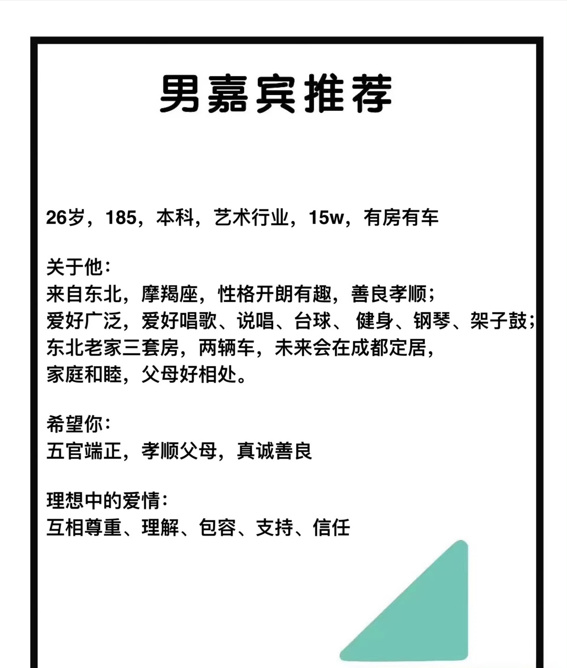 【第7499号】99年东北男生,身高185,艺术行业,年收入15+,老家3房2车(成都计划中),父母好相处,会钢琴架子鼓。希望女生五官端正,善良真诚孝顺… 详情戳图↓特约嘉宾——有意者请私信小美,投稿/加群/周末相亲会/小红娘1V1牵线 请私信!