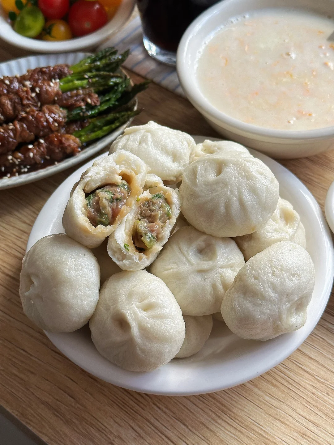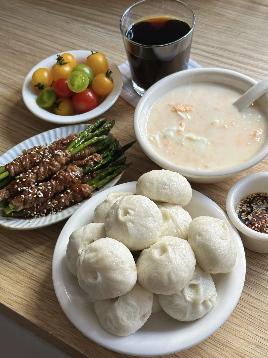 越来越享受在叮咚一站式买齐早餐的轻松。今早的幸福感,是这盘黄牛肉小笼包和这碗鸡蛋豆浆给的。 - 🍘 良芯匠人手作老面泾源黄牛肉小笼包 蒸锅上汽,看着小笼包在热气中慢慢变得圆润鼓胀,心情也跟着舒展开来。面皮由老面发酵,格外蓬松柔软,咬下去软乎乎的,却又不失嚼劲。咬开一个小口,汤汁鲜甜,内馅是混着香芹的黄牛肉,肉香浓郁,瞬间把记忆拉回到校门口那家热气腾腾的早点摊。 - 🫕 鸡蛋豆浆汤 在寒冷的冬日来一碗热乎乎的鸡蛋豆浆,真的特别舒服。豆浆是叮咚上一直回购的有豆志山涧柴火低糖甜豆浆,低糖配方,豆香纯粹,而且独立袋装设计特别方便携带和储存,上班赶时间随手拿一袋,健康又省心。搭配嫩滑的鸡蛋,暖心又满足,几分钟就能搞定一顿暖胃早餐。 - 🥓 肥牛芦笋卷 肥牛片裹着鲜嫩的芦笋,在煎锅里微微一煎,便成就了早餐的精致担当。一口下去,外层焦香,内里清脆,是荤与素恰到好处的相遇。 - ☕️ 咖啡 🍅 小番茄