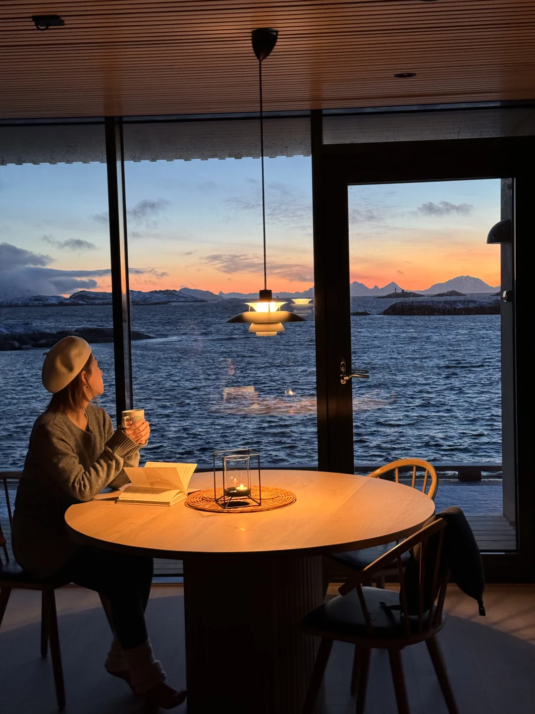 离特罗姆瑟车程1.5h的峡湾小镇,这家民宿真的超爱!!可以去的几天天气不给力,窗外也没有积雪,但是氛围感绝了!
