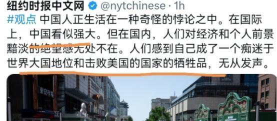 纽约时报称,“中国人生活在一种奇怪的悖论中,在国际上中国看似强大, 但在国内,人们对经济和个人前景暗淡的绝望感无处不在,人们感到自己成了一个痴迷于世界大国地位和击败美国的国家牺牲品,无从发声。”老实说,这一段话表面上看似乎还挺有道理,但仔细分析一下就知道,完全是舆论战的拙劣手段。   老实说,这一段话表面上看似乎还挺有道理,但仔细分析一下就知道,完全是舆论战的拙劣手段。   先说说经济这块,哪来的“暗淡”?毕马威刚发布的报告显示,2025年前三季度中国GDP同比增长5.2%,比去年还高了0.4个百分点,全年5%左右的增长目标眼看着就能顺利完成。   规模以上工业增加值涨了6.2%,制造业和基建投资都在回升,国家投放的5000亿元政策性金融工具正在发挥作用。消费市场前三季度社会消费品零售总额涨了4.5%,大家网上购物的热情一点没减,网上零售额直接涨了9.8%。中秋国庆假期的旅游、餐饮火得不行,“双十一”促销又带动一波消费,这样的经济表现怎么能叫暗淡?   再看大家最关心的民生保障,国家可是一直没停过发力。2025年医保新政策一堆福利,跨省异地就医直接结算去年就覆盖了2.38亿人次,减少群众垫付近2000亿元,今年还在扩大跨省共济的范围。   长期护理保险已经覆盖1.8亿人,260多万失能老人能享受待遇,以后还要建成全民覆盖的独立险种。连辅助生殖技术都纳入了医保,去年就惠及超100万人次,三分之一的地区生育津贴能直接发给女职工。医保基金累计结存3.87万亿元,收支平衡还有结余,看病越来越方便、负担越来越轻,这哪是绝望感?   普通人的个人前景更是谈不上暗淡,现在青年创业有补贴,技能培训有支持,制造业升级、新能源、数字经济这些领域都在招人。   很多年轻人要么自己开网店、做自媒体,要么进高新技术企业,收入渠道比以前多太多了。国家还在推进共同富裕,农村和偏远地区的基础设施越建越好,就业机会也在增加。前三季度对非美市场出口增长12.6%,很多企业接到了新订单,工人工资也跟着稳中有升,大家都在忙着搞钱过日子,谁有空绝望?   说“无从发声”更是离谱。现在网上政务留言板、城市留言板到处都是,老百姓有意见、有建议能直接提。很多地方搞政策听证会,都会邀请普通市民、商户参加,大家的想法能直接传到相关部门。就说医保政策调整,国家医保局会公开征求意见,很多网友的建议都被采纳了。社区里有议事会,工作上有职工代表大会,真有问题大家都会说,怎么可能无从发声?   纽约时报所谓的“悖论”,根本就是自己臆想出来的。中国的国际强大,从来不是靠牺牲老百姓利益换来的。恰恰相反,国家强大了,才能有更多资源改善民生、创造就业。经济增长让大家收入提高,国际影响力提升让中国人走到哪都更有底气,这两者根本是相辅相成的。   那些说“绝望感无处不在”的人,要么是没看到中国的真实情况,要么是故意睁眼说瞎话。普通中国人的日子,是一步一个脚印往好里走的。可能大家会有压力,会有烦恼,但更多的是对未来的期待。   毕竟医保越来越全、收入越来越稳、发展机会越来越多,这样的生活,怎么可能让人绝望?纽约时报要是真关心中国人的生活,不如派记者来中国的大街小巷走走,跟菜市场的摊主、写字楼的上班族、创业的年轻人聊聊,别坐在办公室里编故事了。