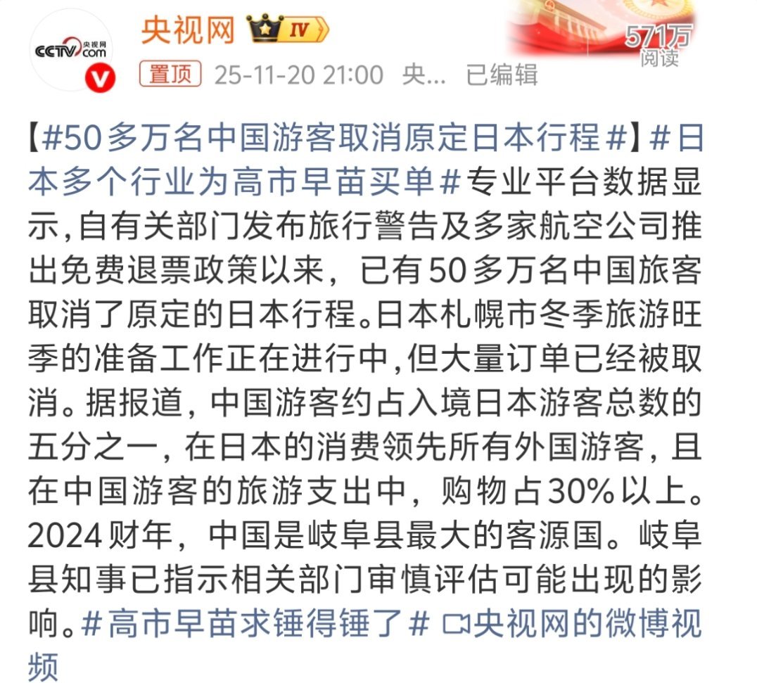 主要高市早苗之所以能上位,而且说出一系列不当言论,就说明现在日本国内右翼势力已经很疯狂,这种“排外”情绪也很危险。