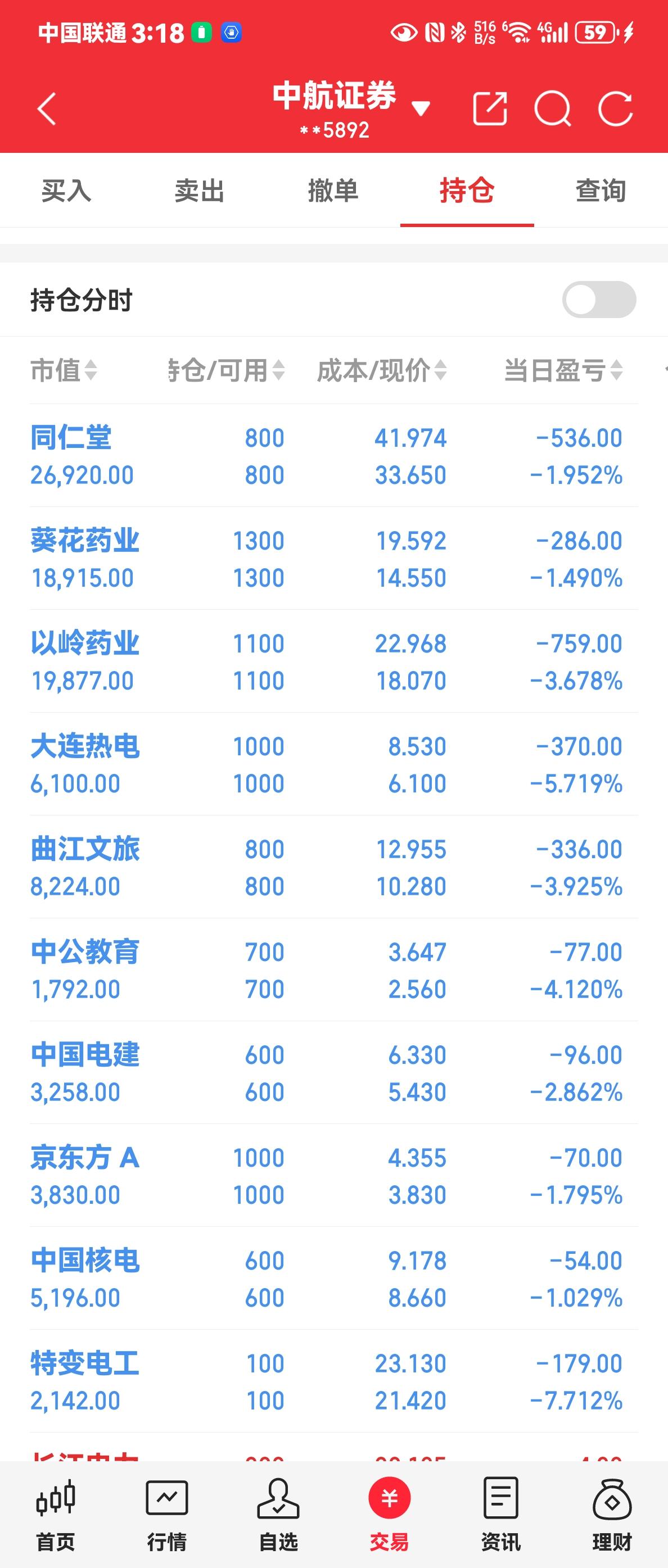 一天回到解放前, 股市沉沉浮浮, 有没有人和我一样, 只要赔了坚决不出手, 还盲目自信有回调的一天, 终于明白了什么是被套了 不求更多, 只要回本都行, 我祈祷🙏🙏