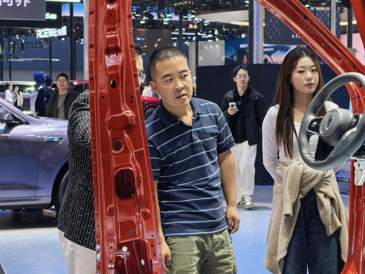 广州车展赛力斯问界展区,果然是人气最佳区域,不仅热门车型区域都被直播小姐姐占满了,随便在一个角落都能拍到网红一枚,广州车展条纹哥,应该是很多宅男的偶像。今天见到真人了,他就是认真,他看的是赛力斯今天发布的魔方平台2.0和玄武车身,开心一整天。赛力斯问界