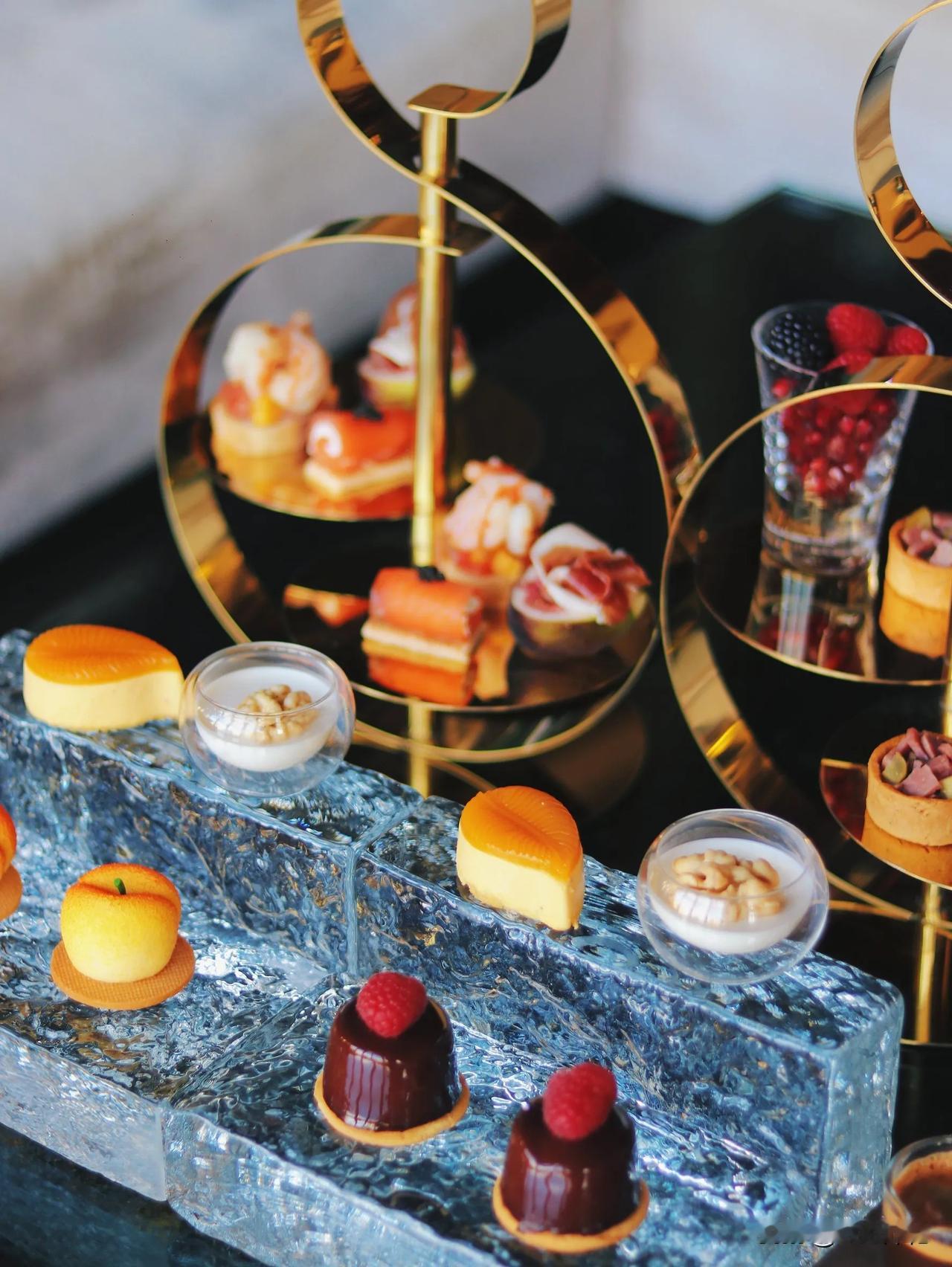 金风轻摇叶,秋意韵悠长。彩蝶蹁跹处,秋颂下午茶正当时。约了朋友一起愉快的在洲际酒店彩蝶吧,度过愉快的下午茶时光 颜值高、味道好的「秋颂下午茶」,用了漾濞鲜核桃、香橙、脆柿、无花果等金秋时令食材,以秋日“美拉德”为灵感,融合了千层酥的酥脆、焦糖的甜润与黑巧克力的醇厚。 每一个点心都各有不同,鲜核桃的独特口感,香橙的清新多汁,脆柿的爽脆甘甜,无花果的软糯绵密,每一口都是这个秋天的的盛情馈赠。 再配上秋季石榴饮,颗颗饱满石榴籽榨出的鲜甜果汁,淋上咖啡,喝一口在唇齿间绽放浓郁秋味,气泡在舌尖跳跃,与秋日午后的阳光共舞。 阳光温柔洒落,轻抚这旖旎时光。和朋友一块儿沉浸在这场味蕾与视觉交织的秋日盛宴,在昆明洲际酒店 彩蝶吧,尽享秋韵下午茶,邂逅慵懒惬意的金秋时刻。