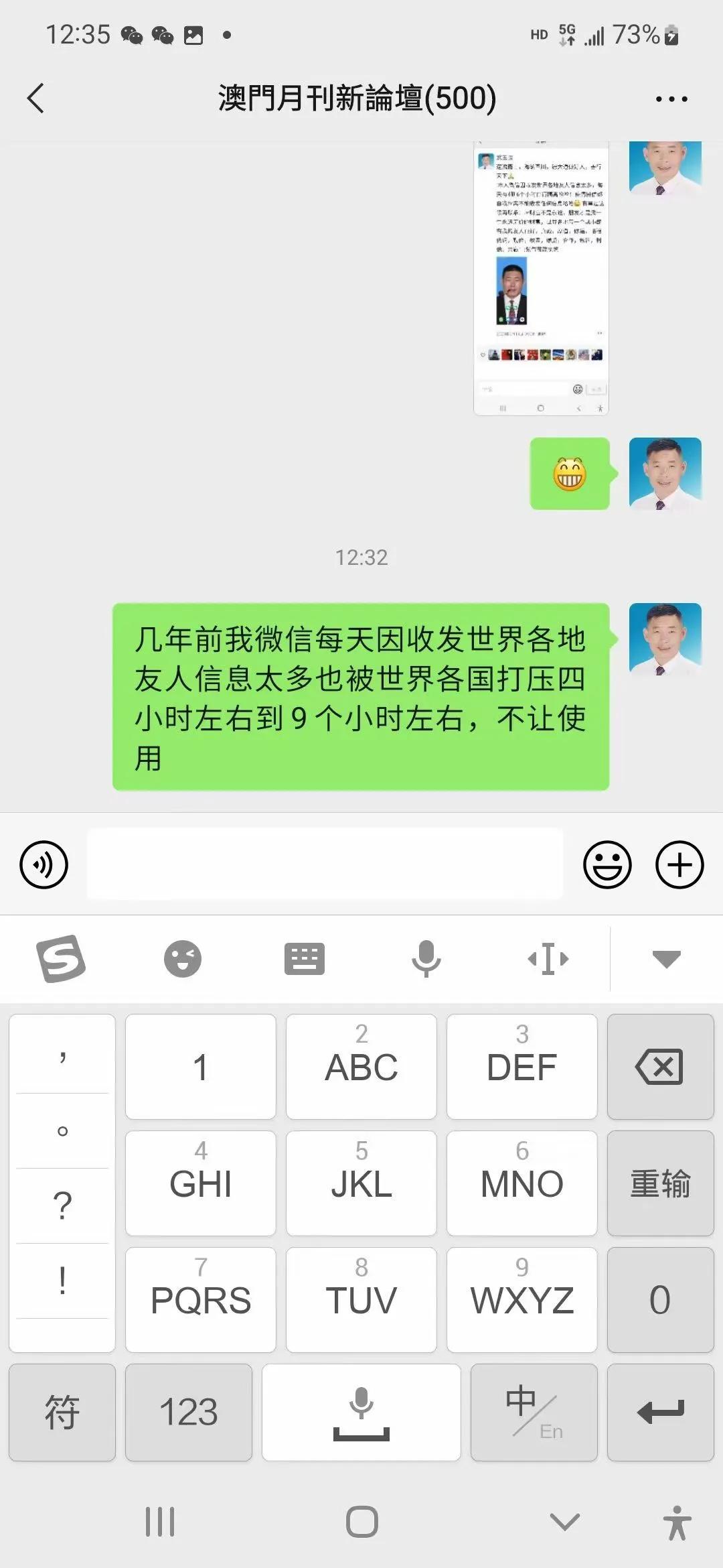几年前我微信每天因收发世界各地华人华侨友人信息太多也被世界各国安全!每天打压四小时左右到9个小时左右,不让使用!人生需要磨砺,正直做人,随缘不攀缘,厚道修福惜福,[碰拳][握手][合十]