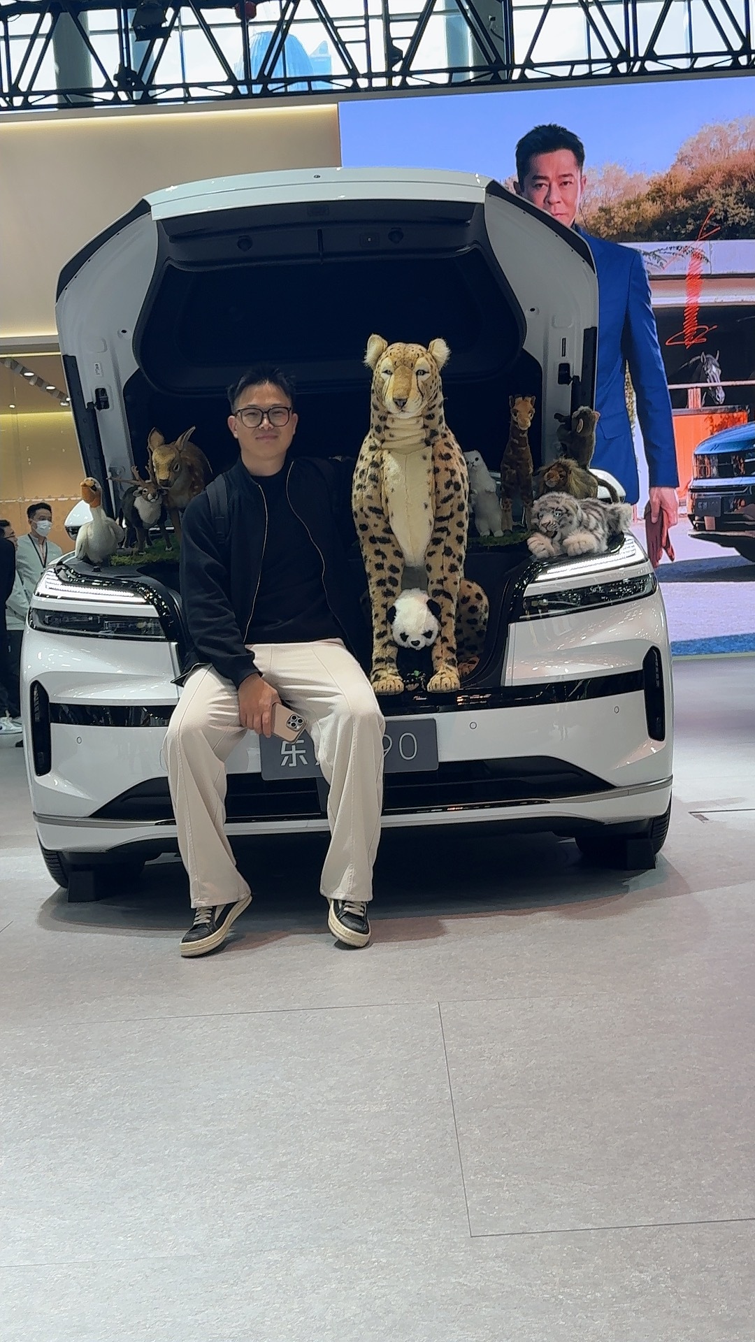 打卡乐道展台,和金钱豹合张影,也是坐上乐道前备箱了