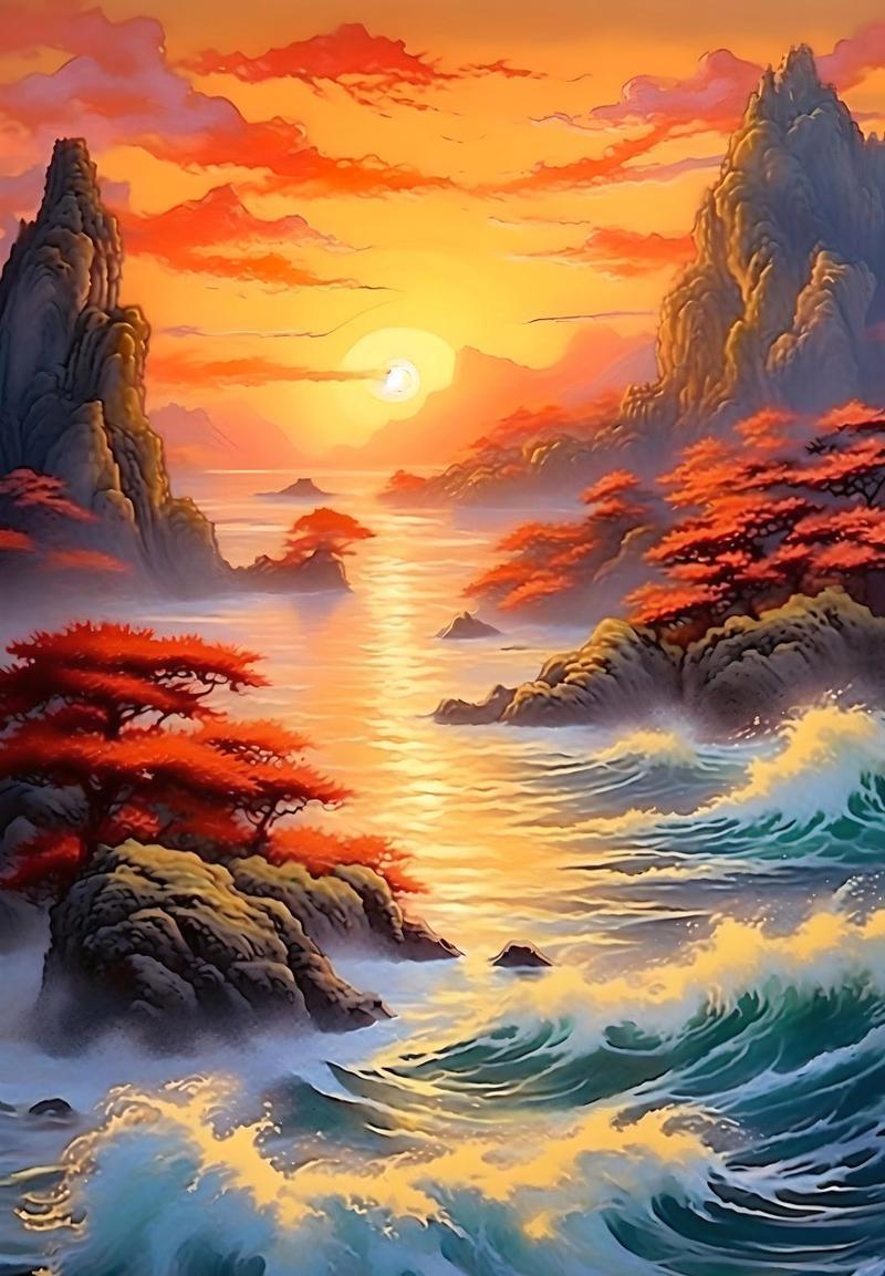 上联:水清鱼跃千层浪, 下联:雪落群山万壑花, 下联:风动松涛数点星。