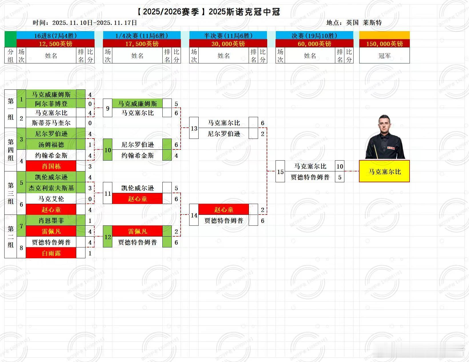 2025世界斯诺克冠中冠第三天2025.11.12日 星期三中国选手赵心童小组赛