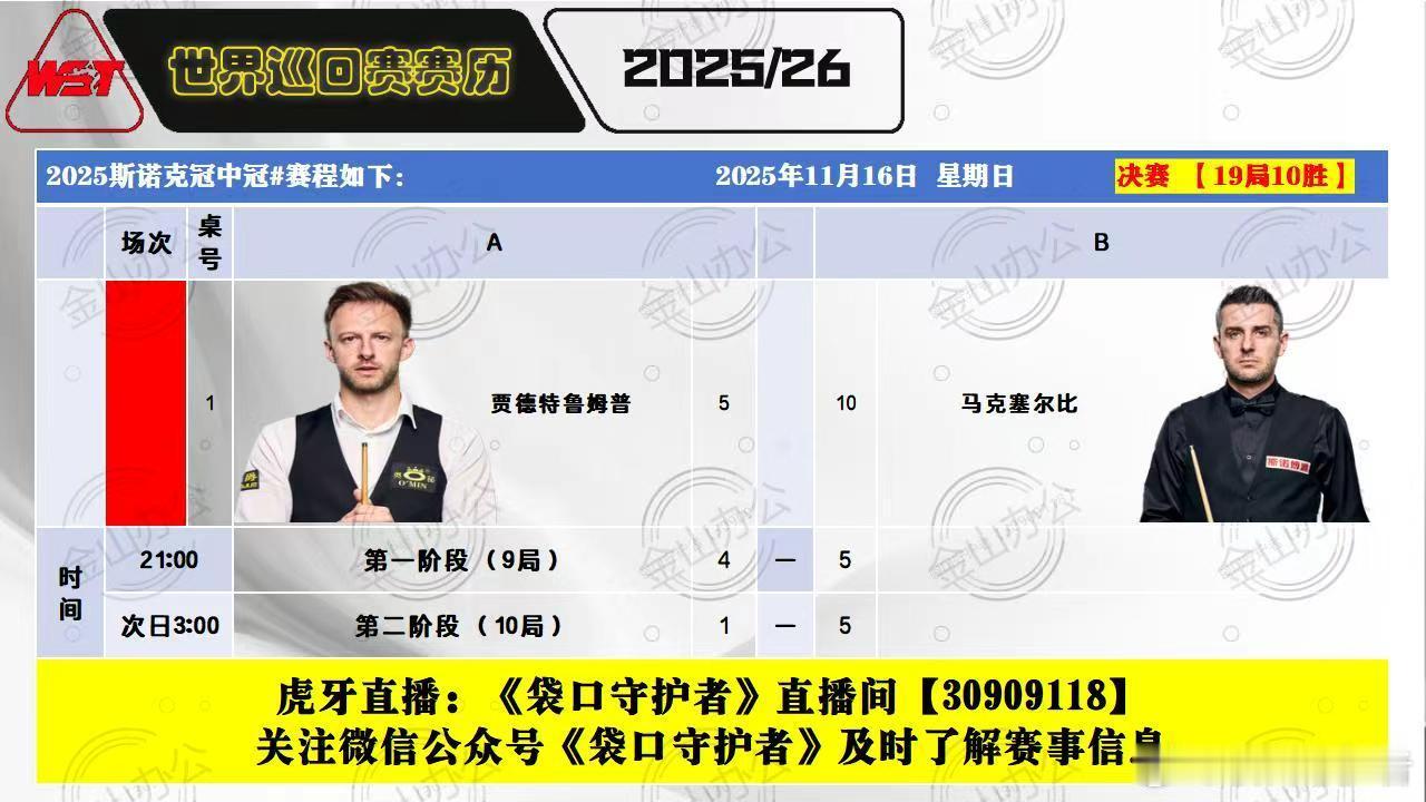 2025世界斯诺冠中冠 第一天2025.11.10日 星期一21:00 直播
