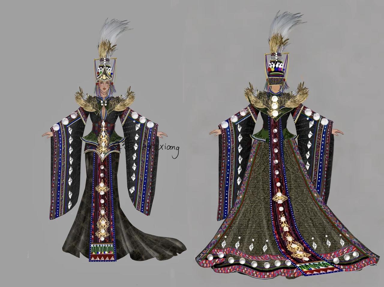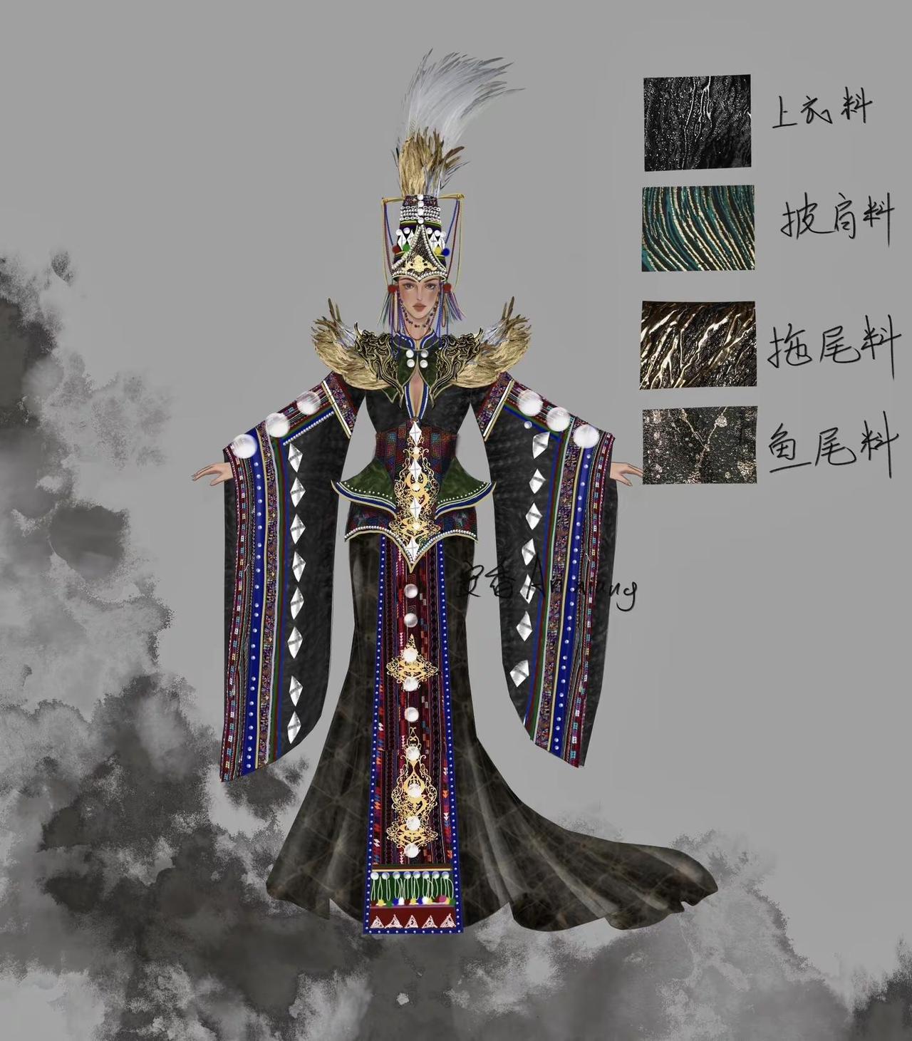 哈尼族夸张礼服舞台装剧目演出服饰设计。服装设计服装定制少数民族服饰哈尼族服