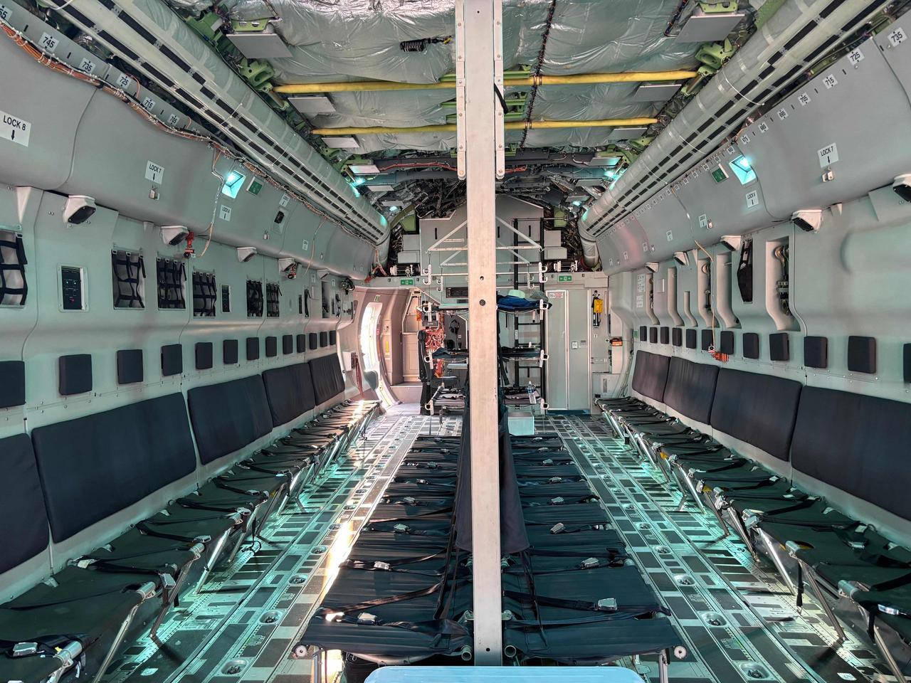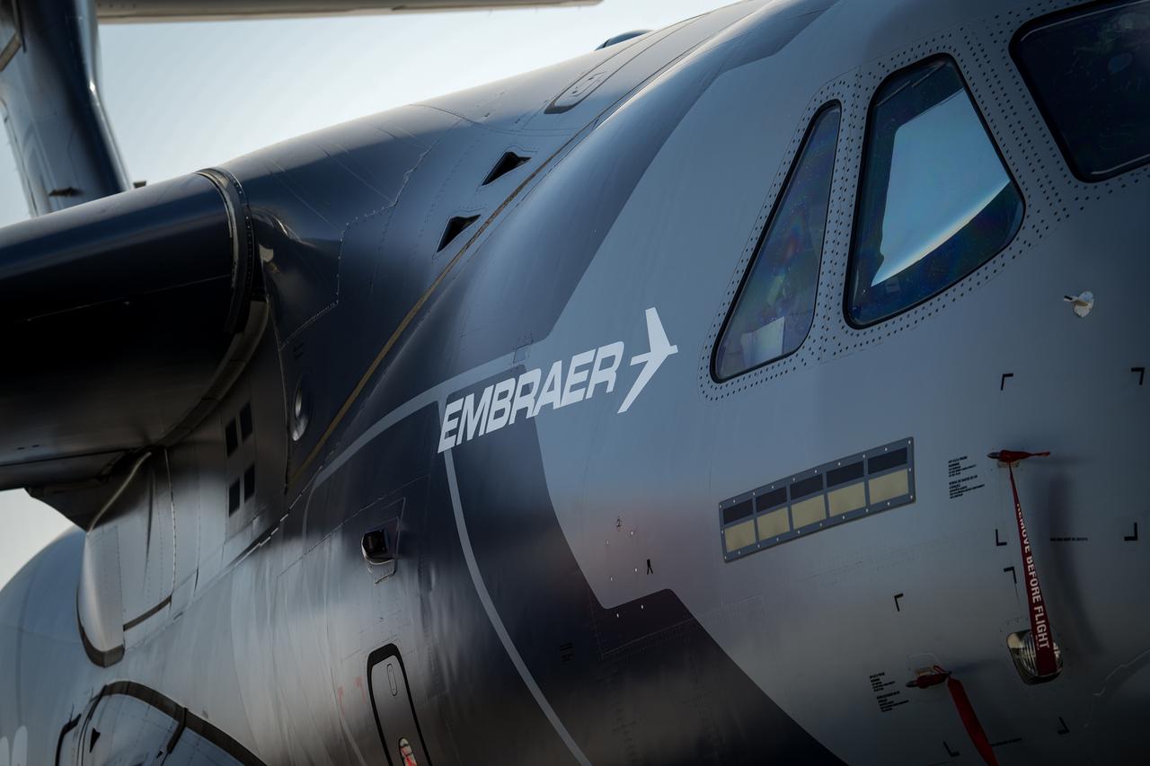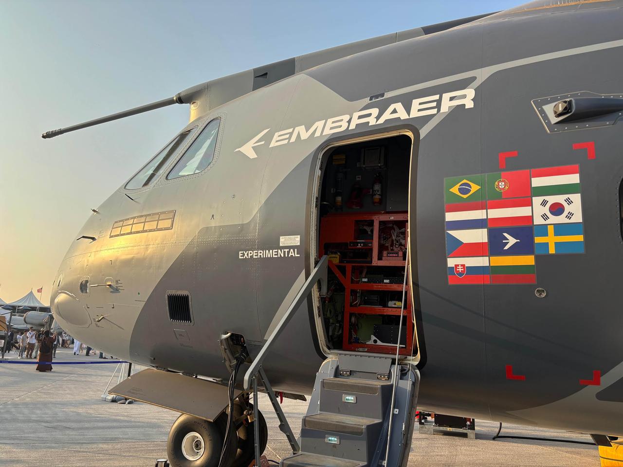 巴西航空工业公司的 KC-390 千禧多用途军用飞机在DubaiAirshow 2025 展出。这款战术运输机身披新涂装。