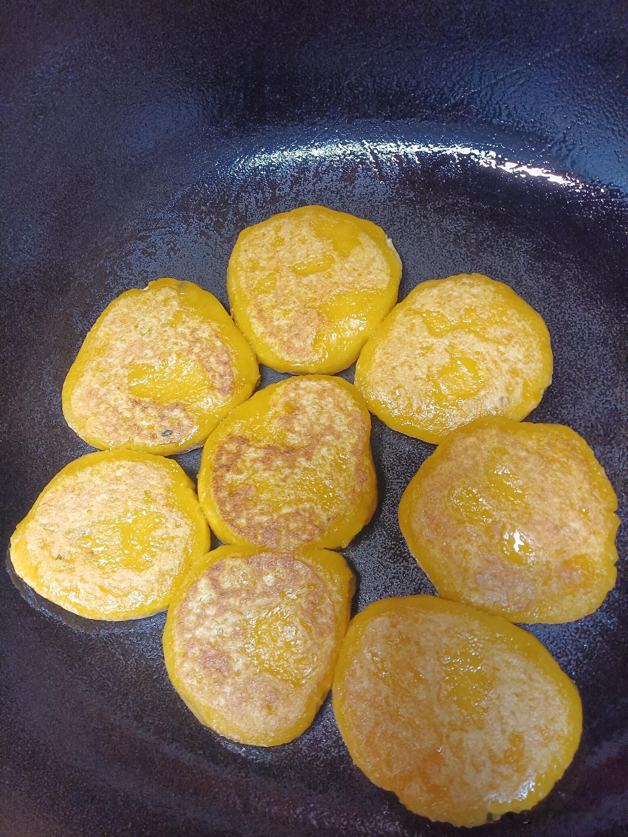一个人忙了一个下午啦!前段时间从老家带了几个老南瓜。 刚好今天休息,小孩子说想吃南瓜饼,下午就开始做,剥完南瓜皮还不错,金黄金黄的,看着都很甜, 一个南瓜全部都做了,从蒸熟到冷却就花一个小时了,再到放糯米粉,揉捏成饼到下锅煎,做了两个多小时,腿都站酸了, 因为是小孩子吃,都是煎的,没有用油炸,时间比较久一点,吃起来不会那么油,就感觉健康一点吧! 最后终于完美做完!试了一个,还可以,软软糯糯的,还不错,大家可以试试哦~ 南瓜饼 南瓜煎南瓜饼 南瓜饼糯米粉