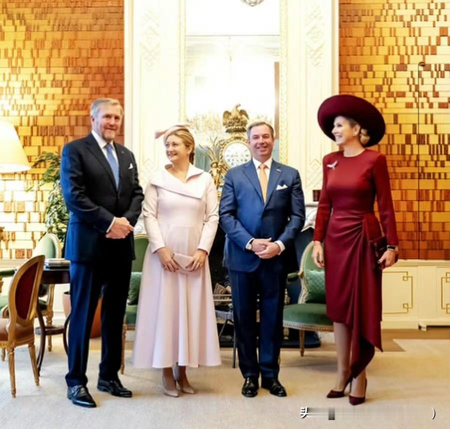 新升级的纪尧姆大公和斯蒂芬妮大公夫人访问荷兰!荷兰国王夫妇接待!马克西玛的群里和