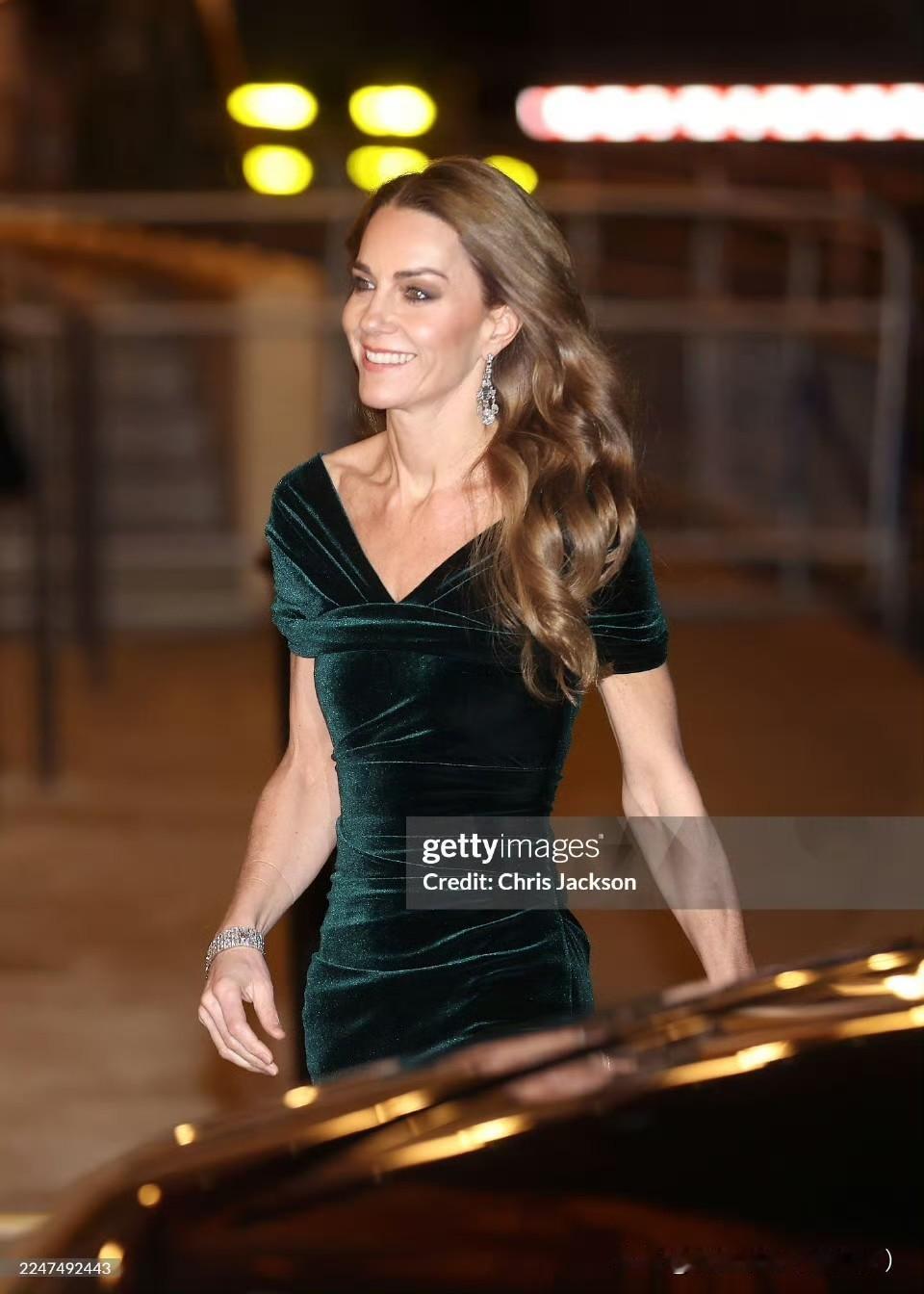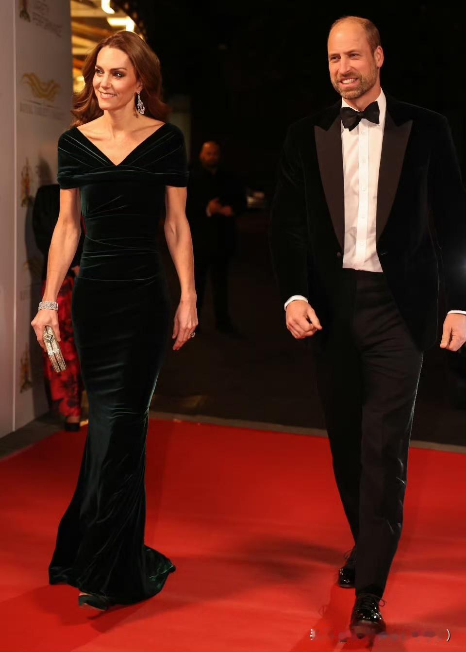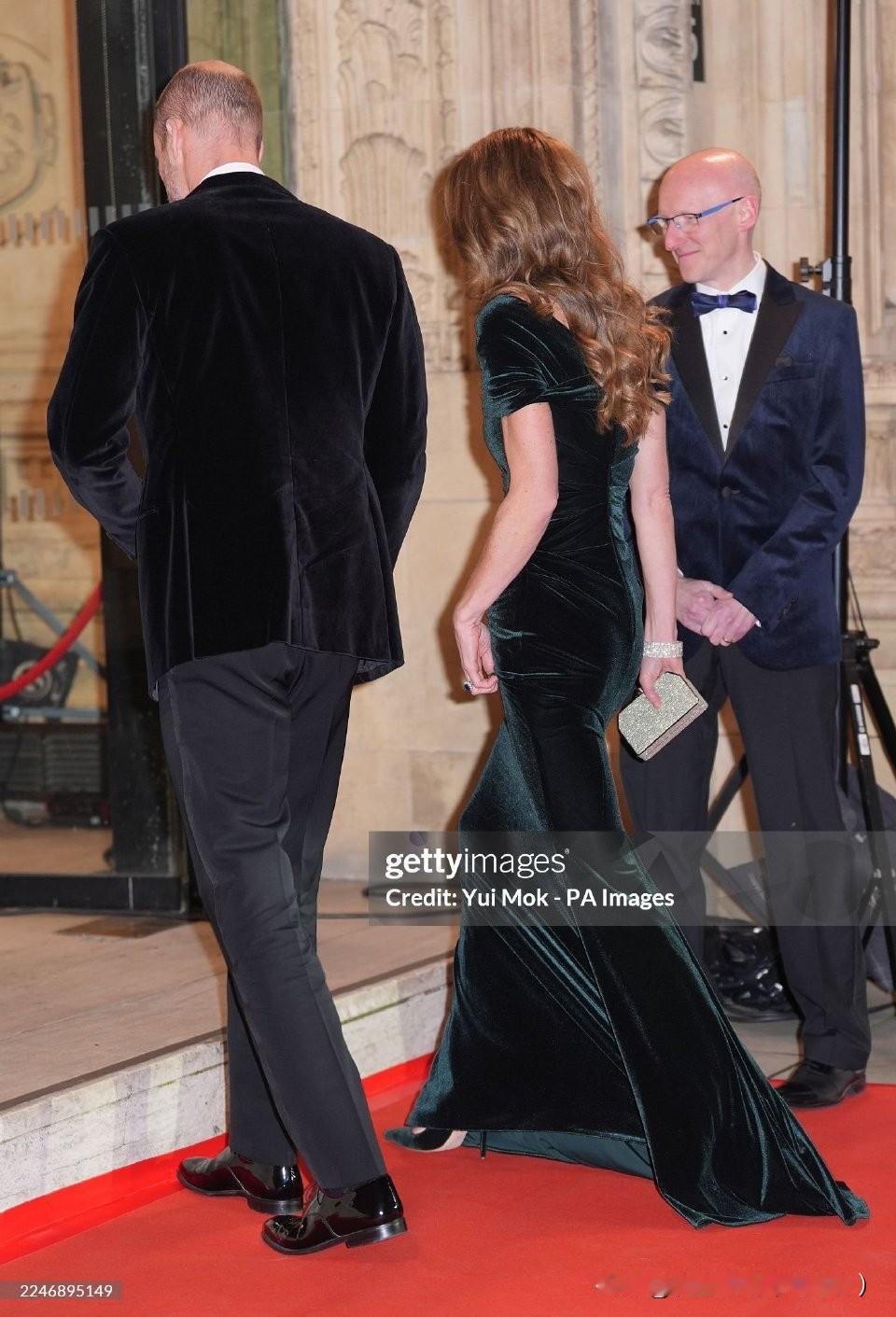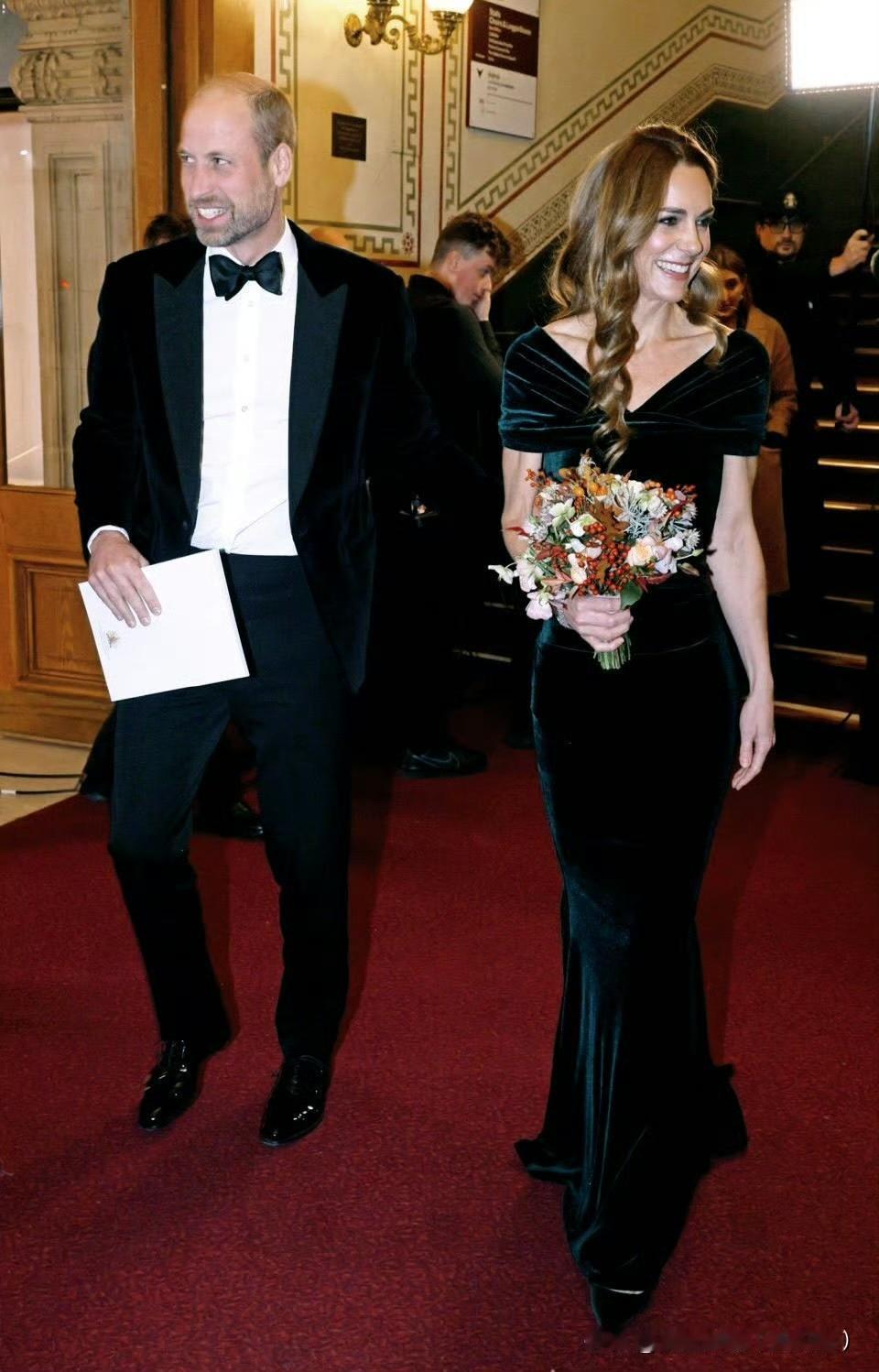 威廉凯特合体活动,在皇家阿尔伯特音乐厅出席慈善文艺汇演。凯特王妃绿色丝绸礼服看着优雅,实际上夜间的气温并不高,实在是美丽冻人了!不过大波浪和露背设计都很和谐!