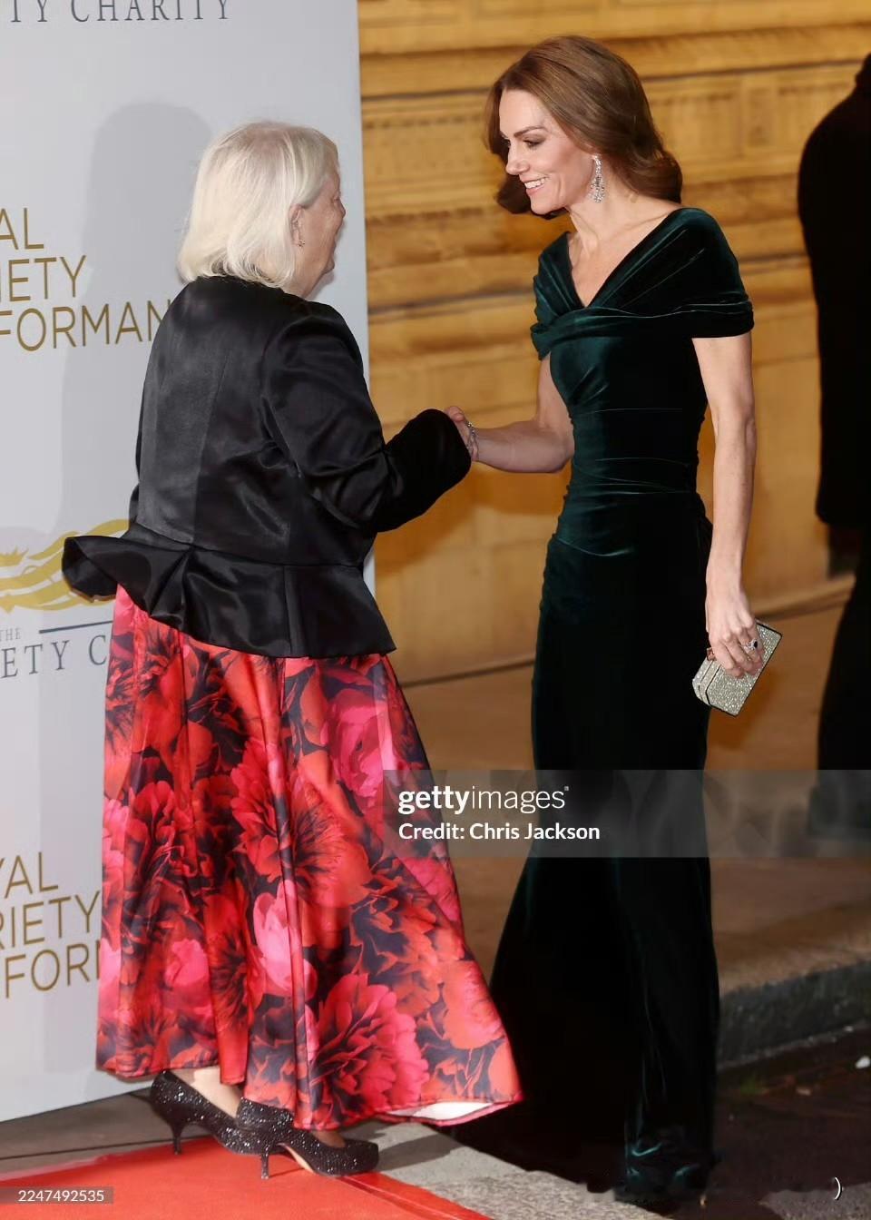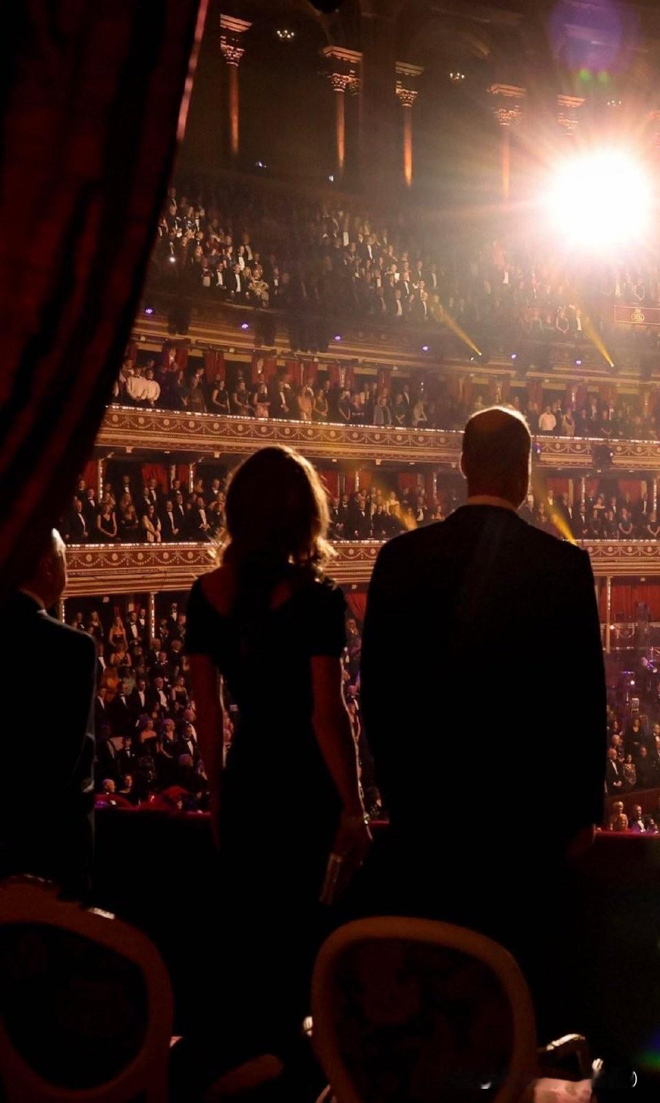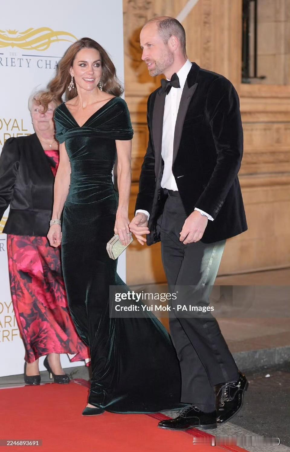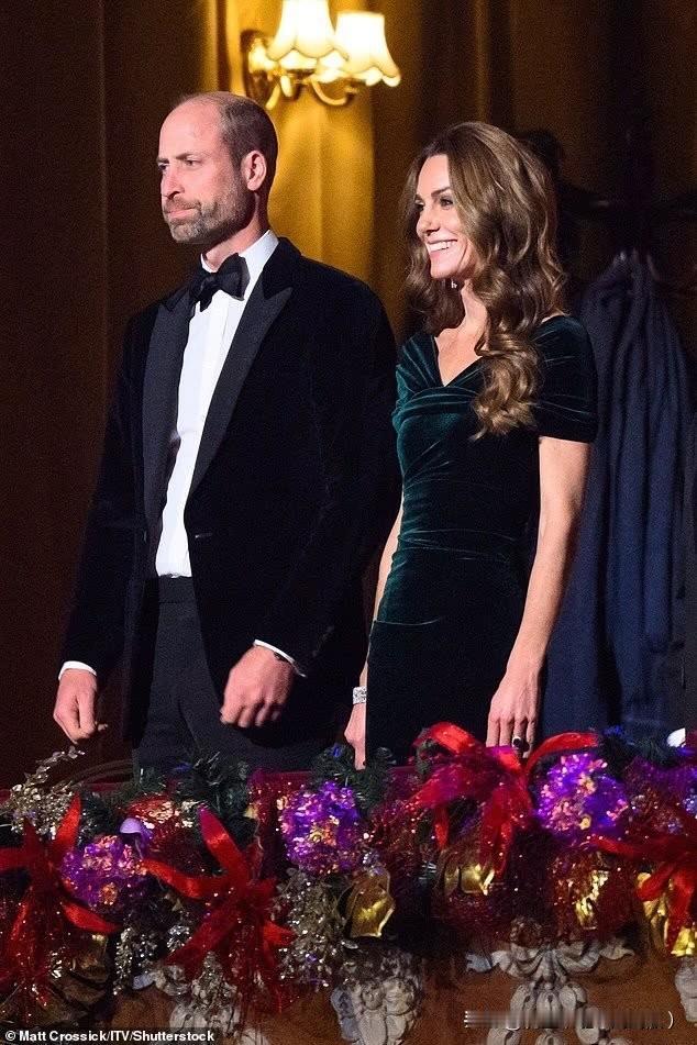 威廉凯特合体活动,在皇家阿尔伯特音乐厅出席慈善文艺汇演。凯特王妃绿色丝绸礼服看着优雅,实际上夜间的气温并不高,实在是美丽冻人了!不过大波浪和露背设计都很和谐!